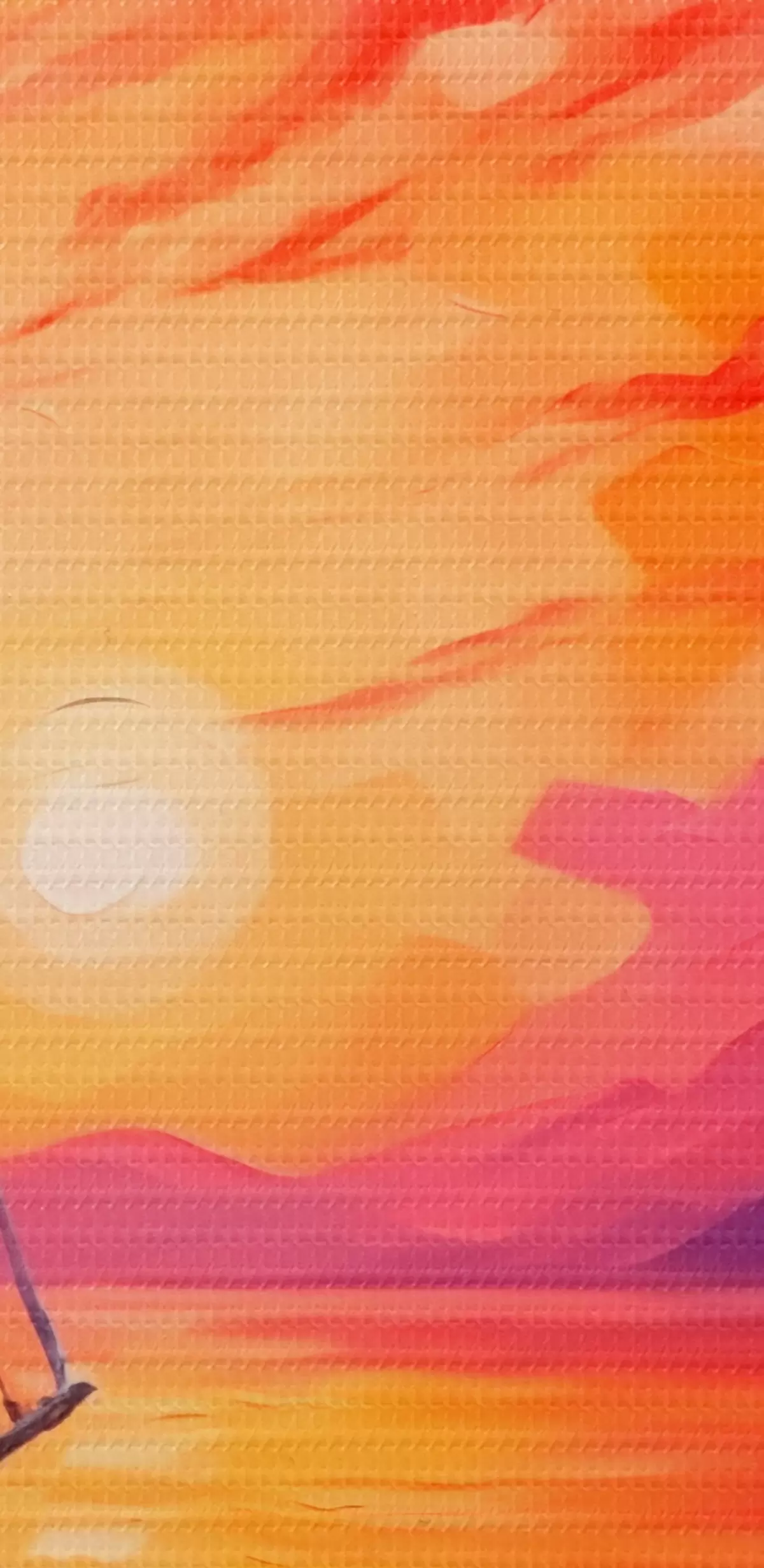 Het schilderij kan direct na ontvangst worden opgehangen. Het schilderij wordt opgespannen op een 2 cm breed houten spieraam.