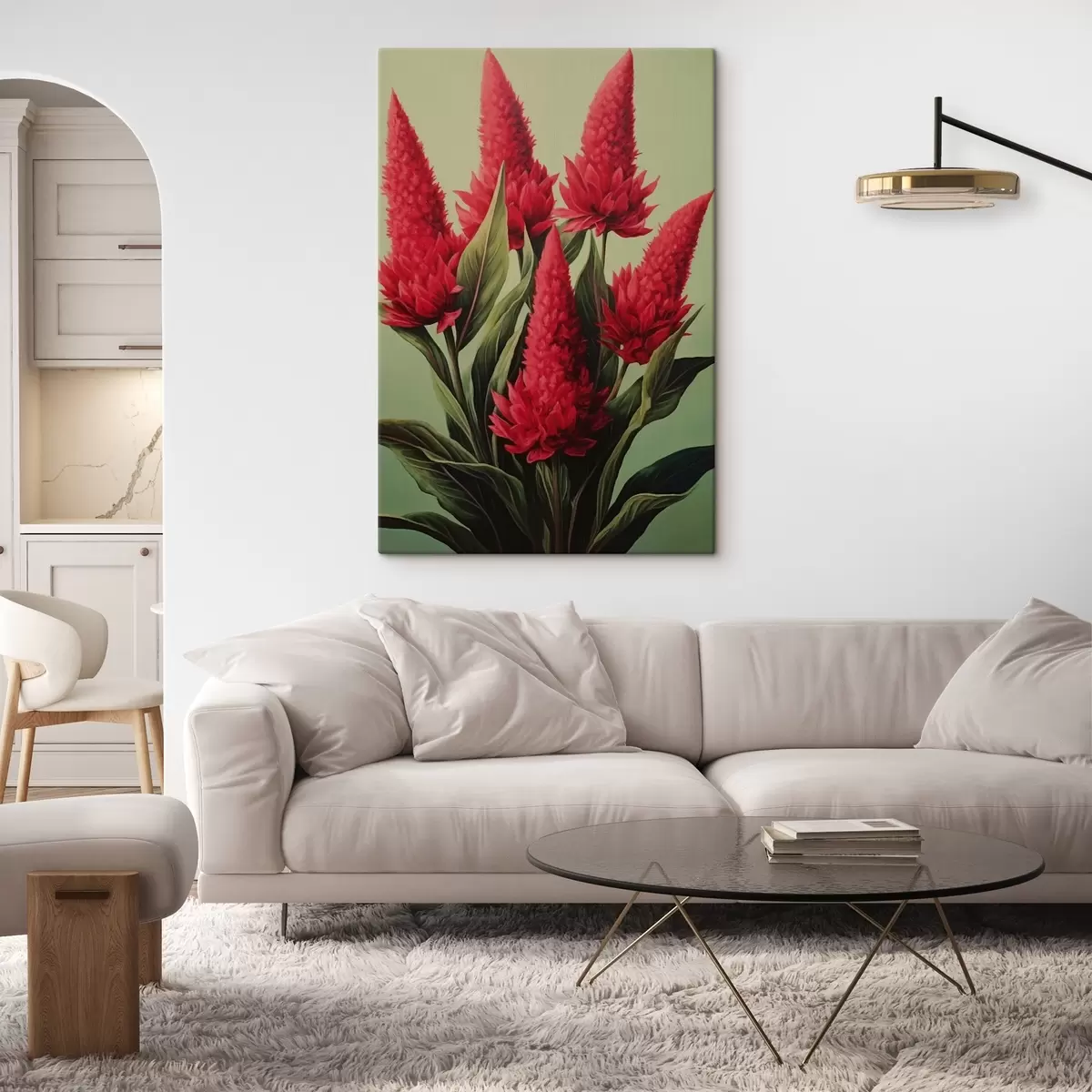 Schilderij Rode bloemen op groene achtergrond Art. s42166