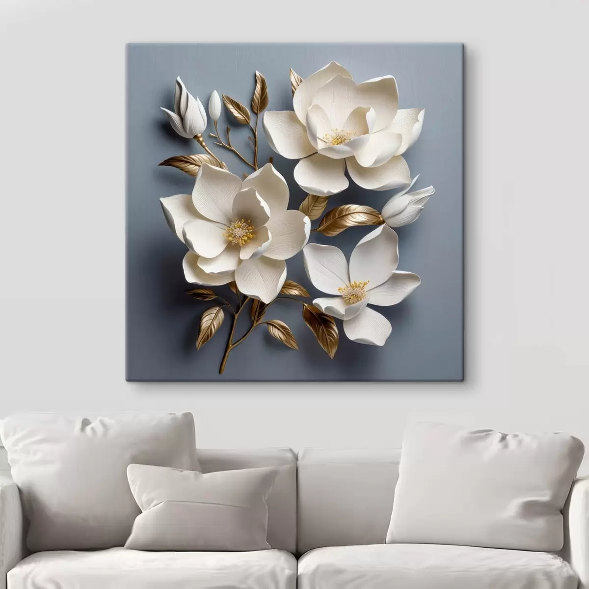 Schilderij Grote bloemen op een lichtgrijze achtergrond Art. s42174