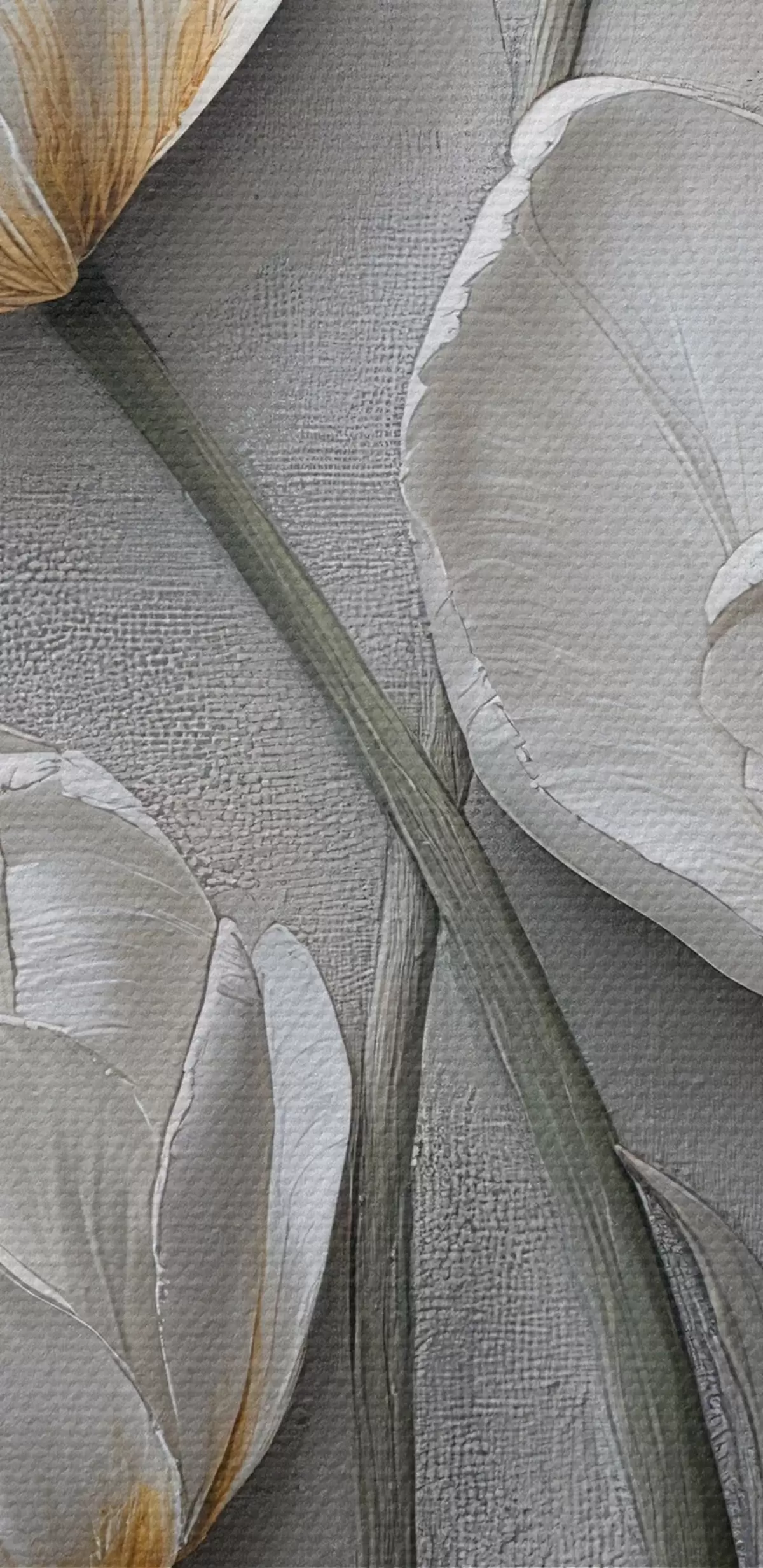 Schilderij Weelderige tulpen tegen de achtergrond van een betonnen muur Art. s42179