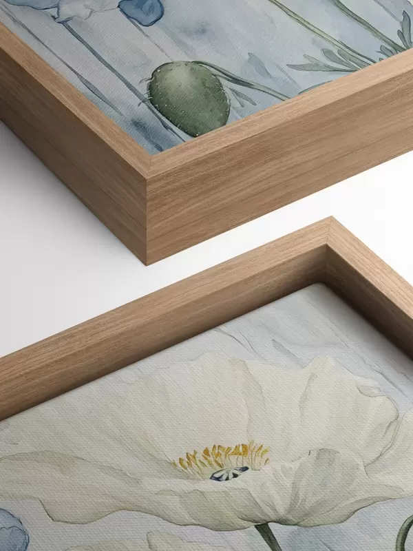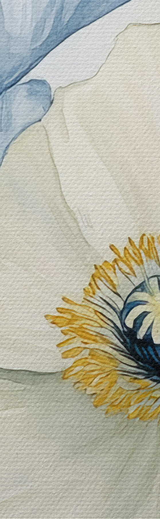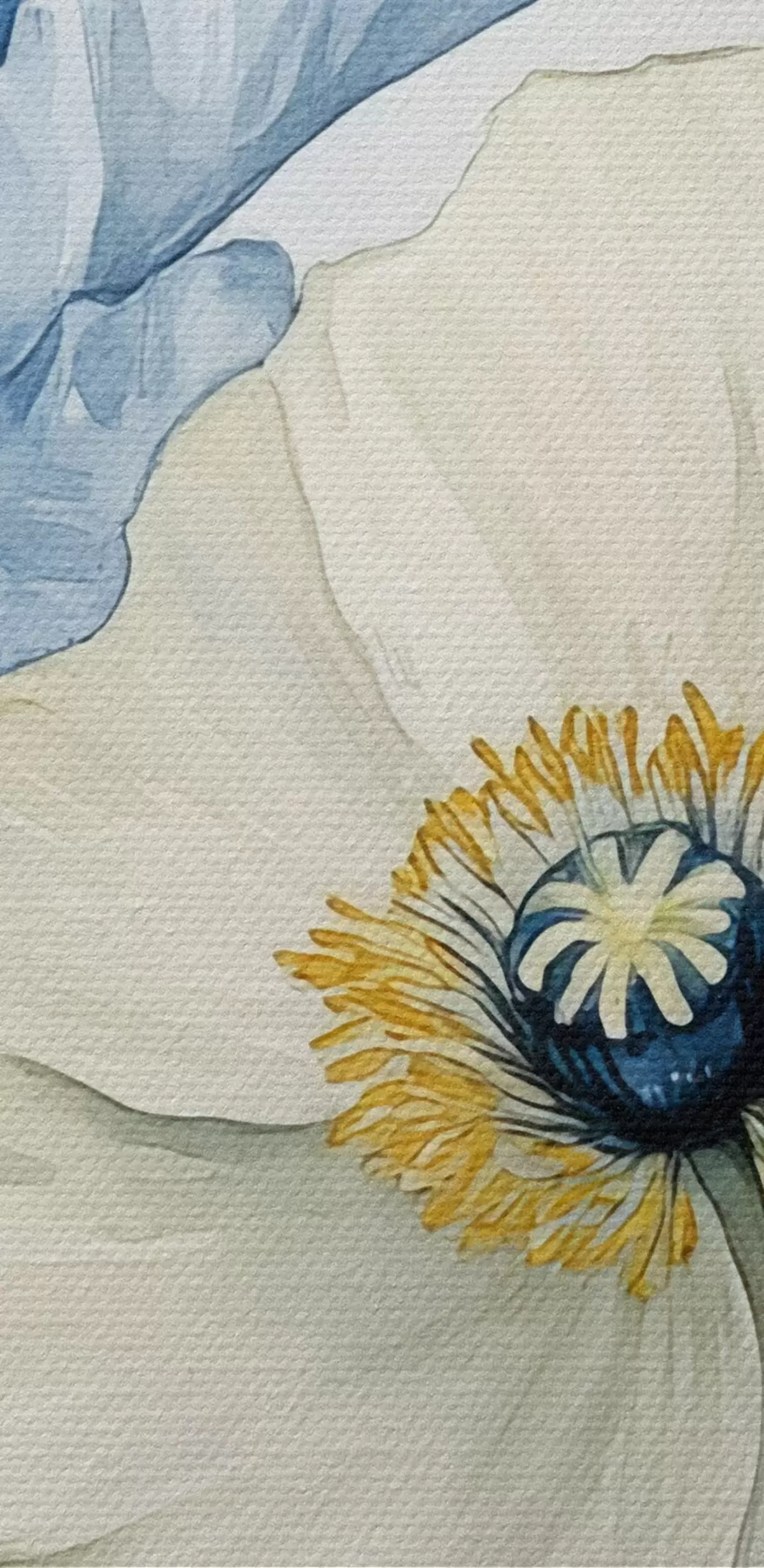 Schilderij Blauwe en witte klaprozen op een aquarelachtergrond Art. s42191