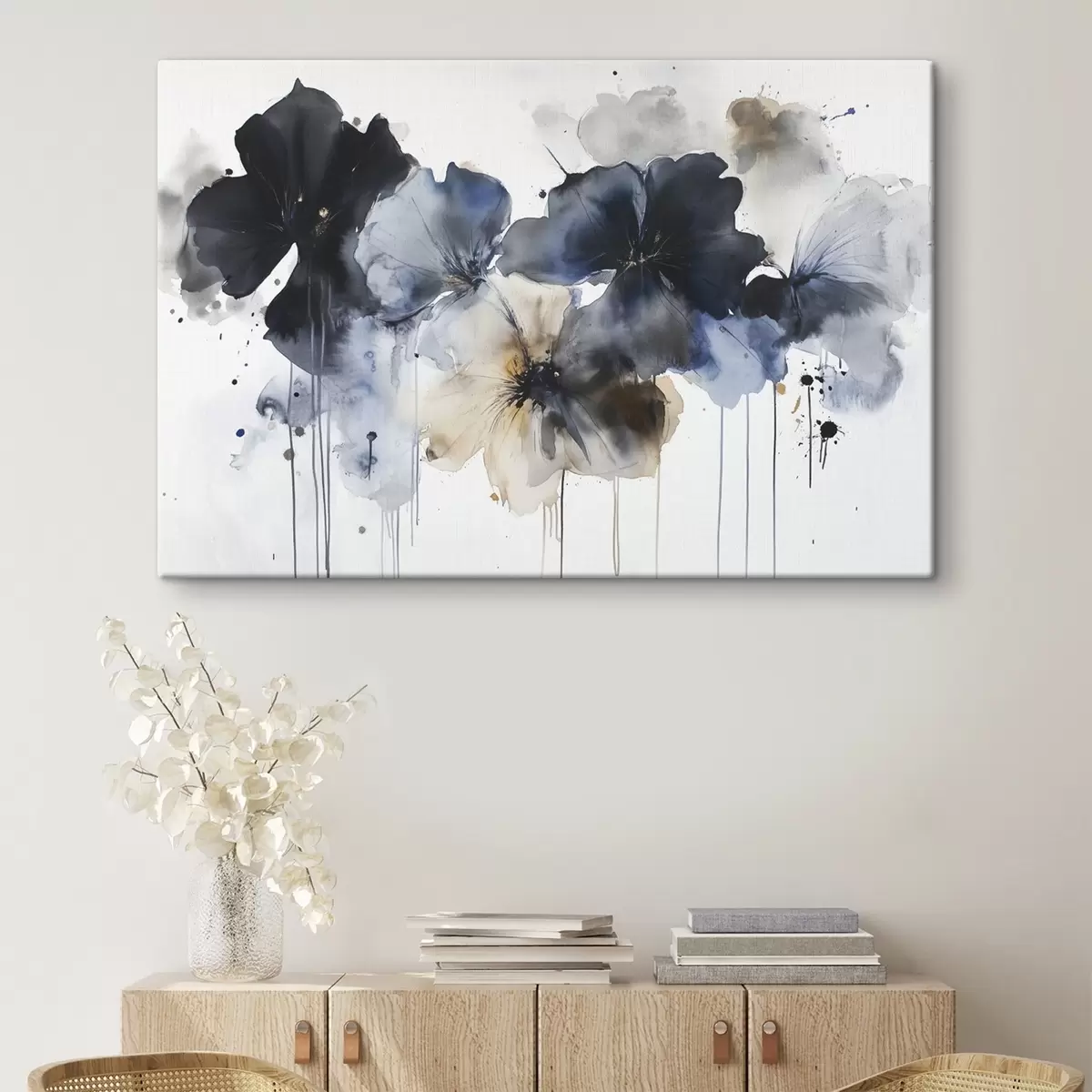 Schilderij Aquarel bloemen, vloeiende stijl, blauwe kleuren Art. s42207