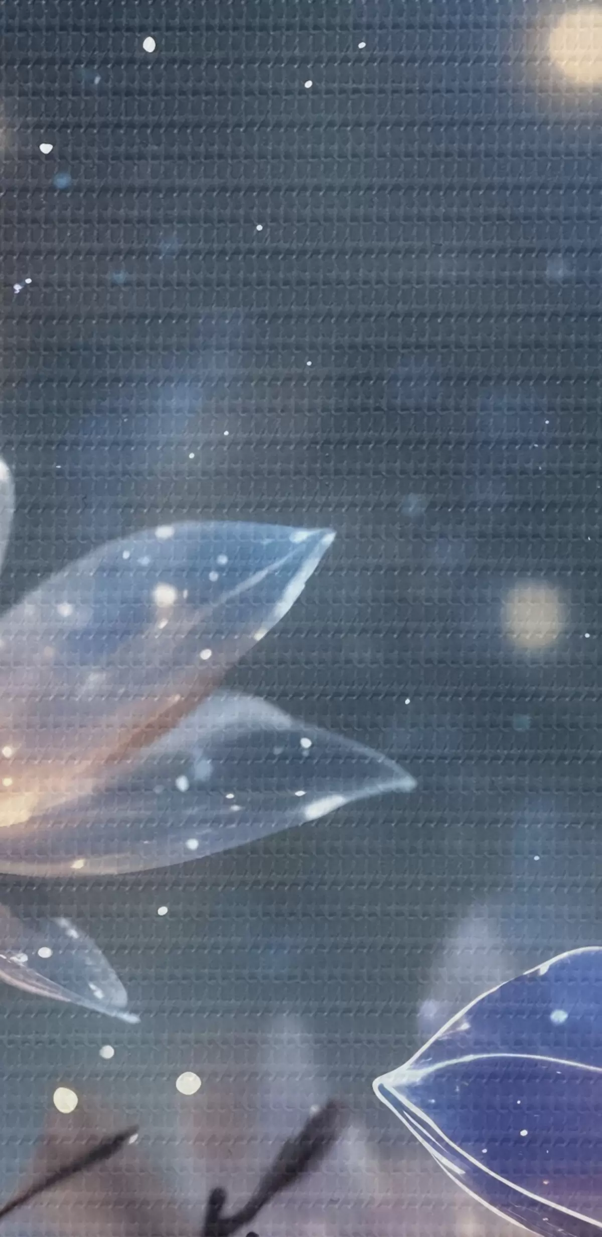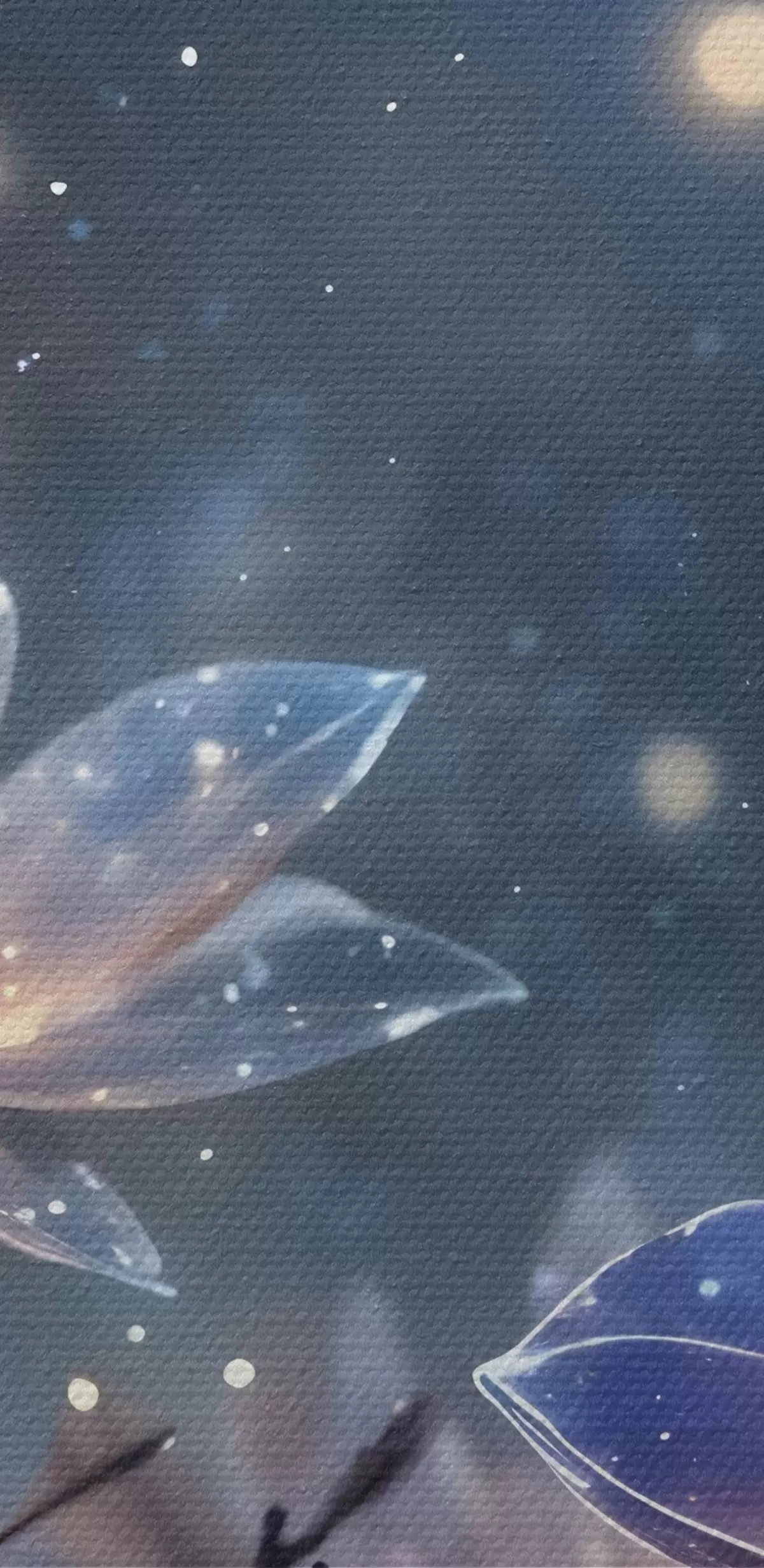 Schilderij Abstracte fantasie bloemen op takken met getextureerde bloemblaadjes met sterren en een maan in een nachtelijke hemel achtergrond Art. s42211