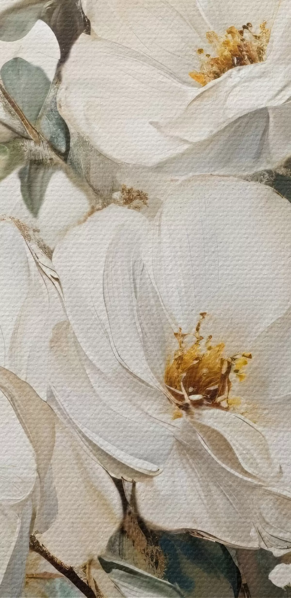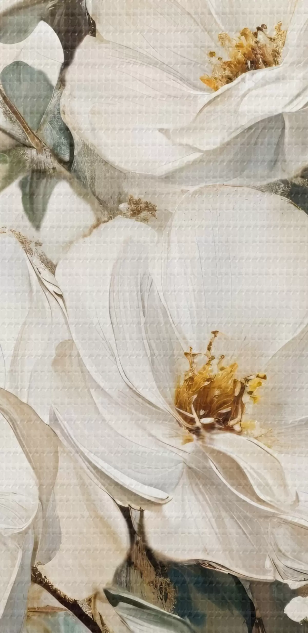 Schilderij Een boeket grote witte bloemen in olieverfstijl met gele harten tegen een lichte achtergrond Art. s42222