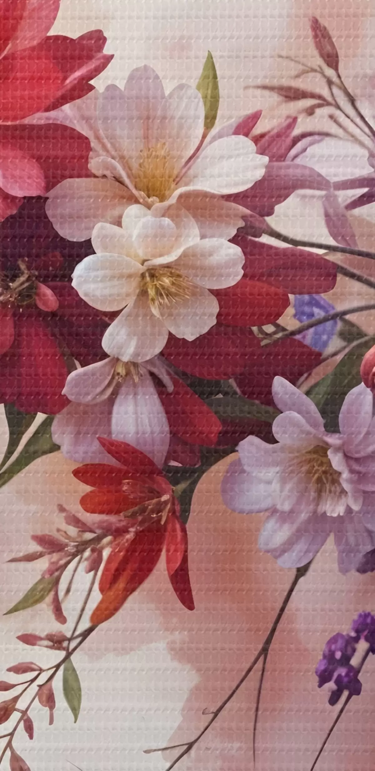 Schilderij Kleurrijke bloemen zoals rode, roze en paarse dahlia's, margrieten en andere bloemen tegen een zachte, onscherpe achtergrond Art. s42234