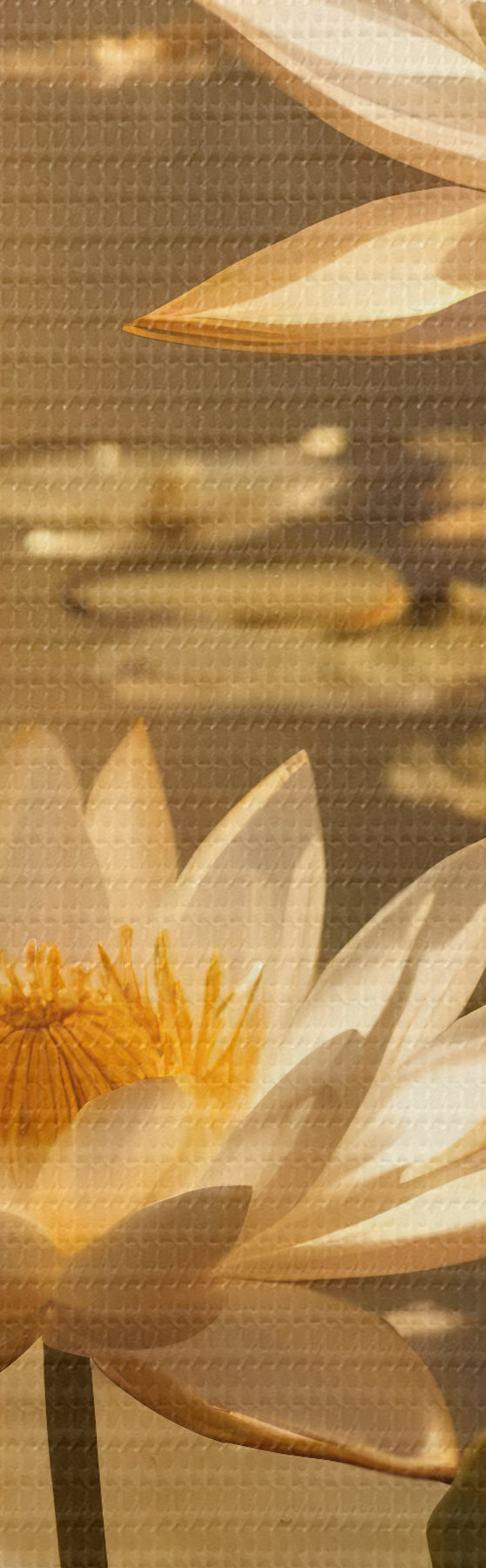 Schilderij Witte lotusbloemen drijven op een kalme vijver met de zon, waardoor een serene en rustige sfeer ontstaat Art. s42239