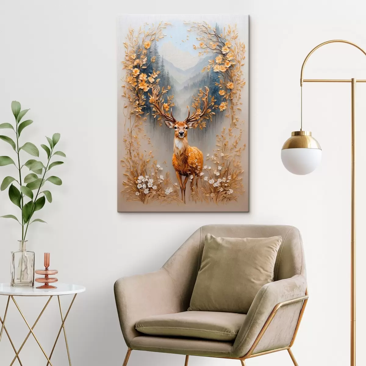Schilderij Hert met groot gewei op bosachtergrond Art. s42252