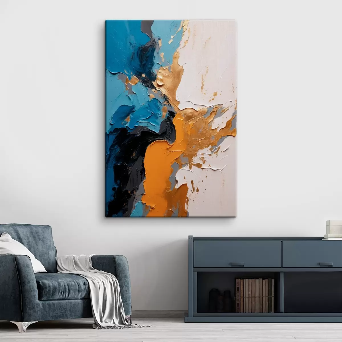 Schilderij Abstract schilderij met blauwe witte en gele kleuren Art. s42254