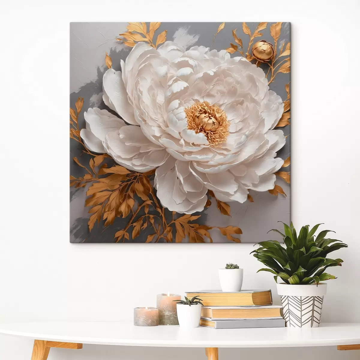 Schilderij Witte pioen op grijze achtergrond Art. s42260