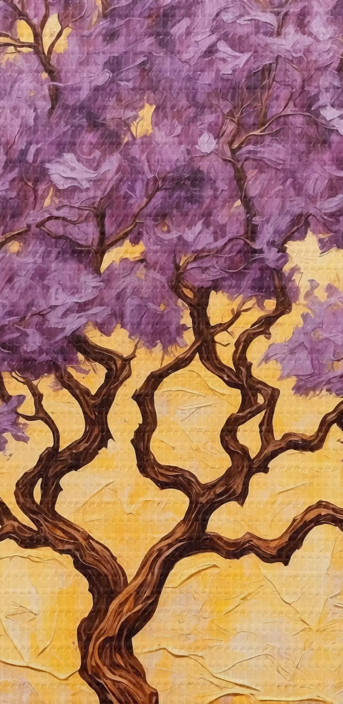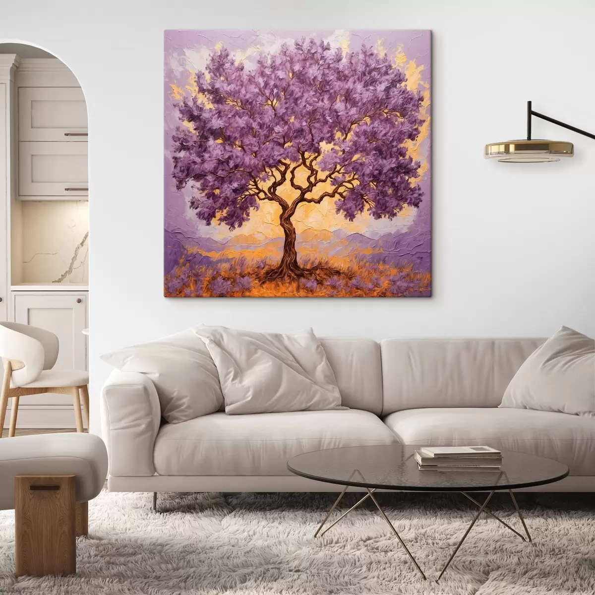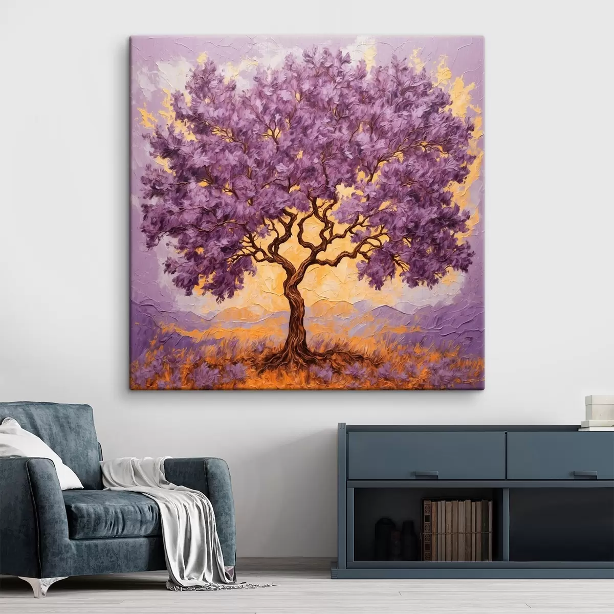 Schilderij Paarse boom op geel-fyolotol achtergrond Art. s42272