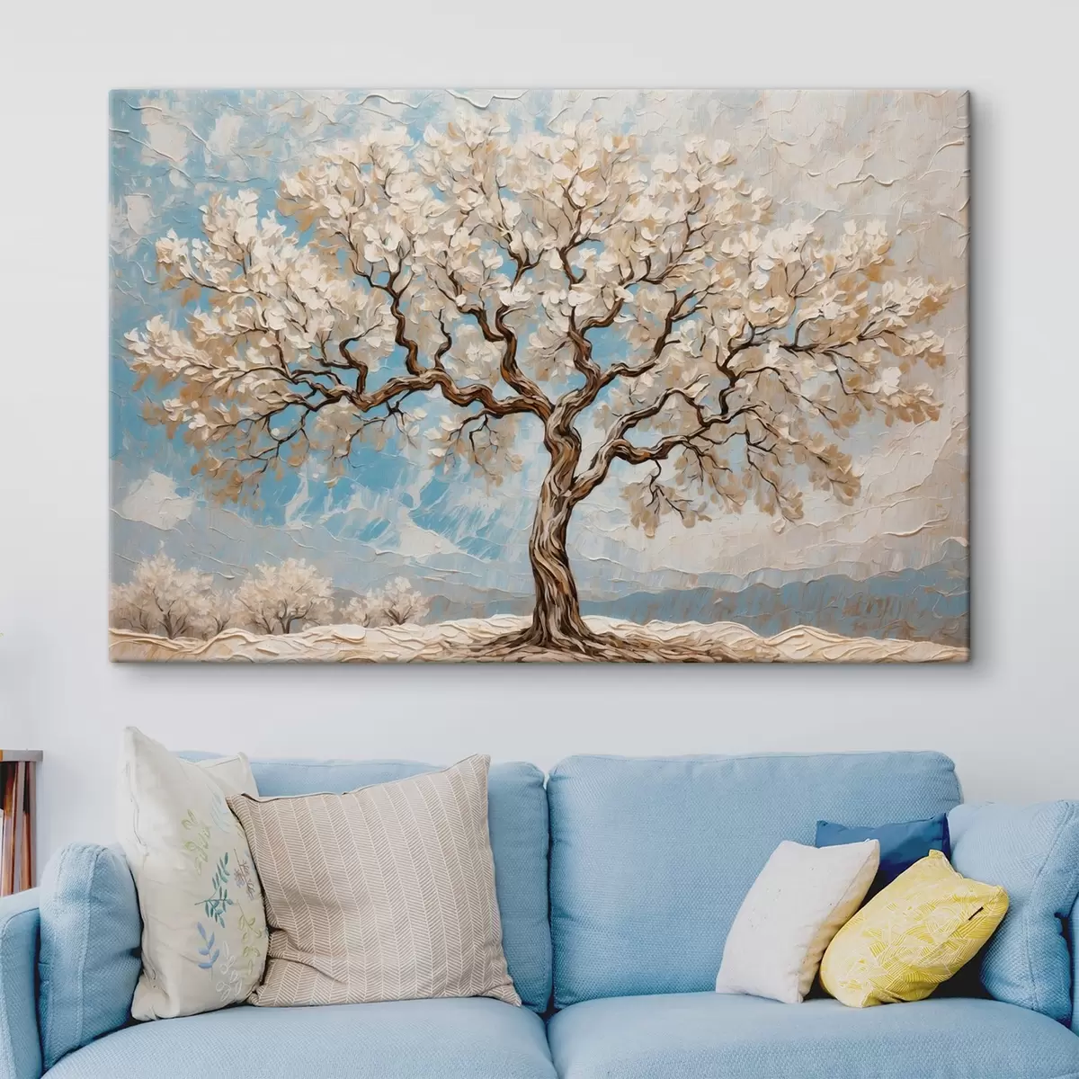 Schilderij Witte boom op blauw-witte achtergrond Art. s42275