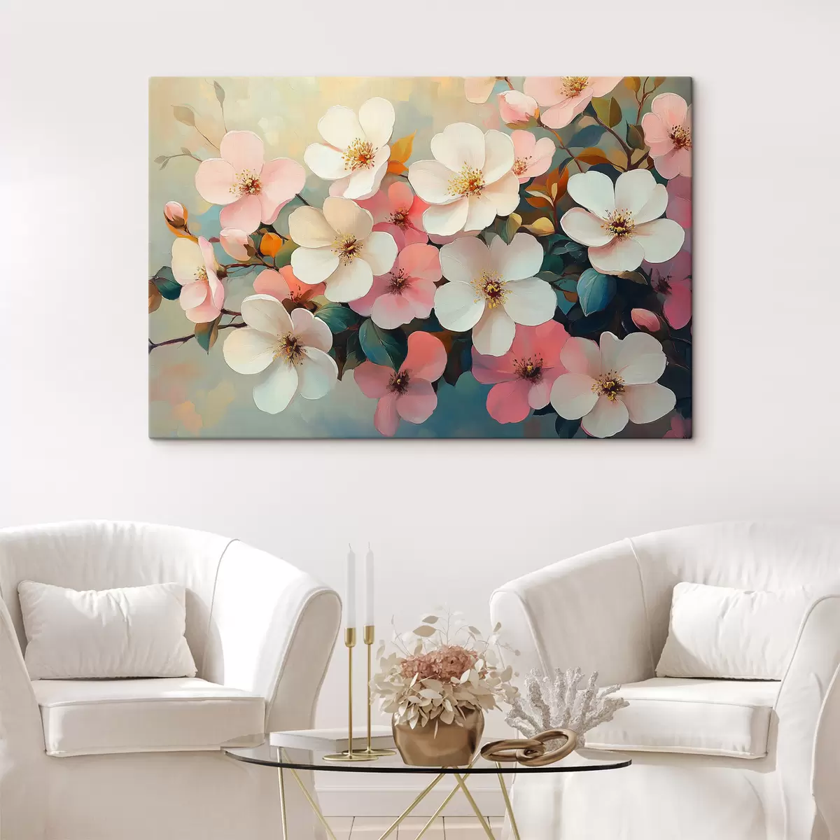 Schilderij Witte en roze bloemen Art. s42330