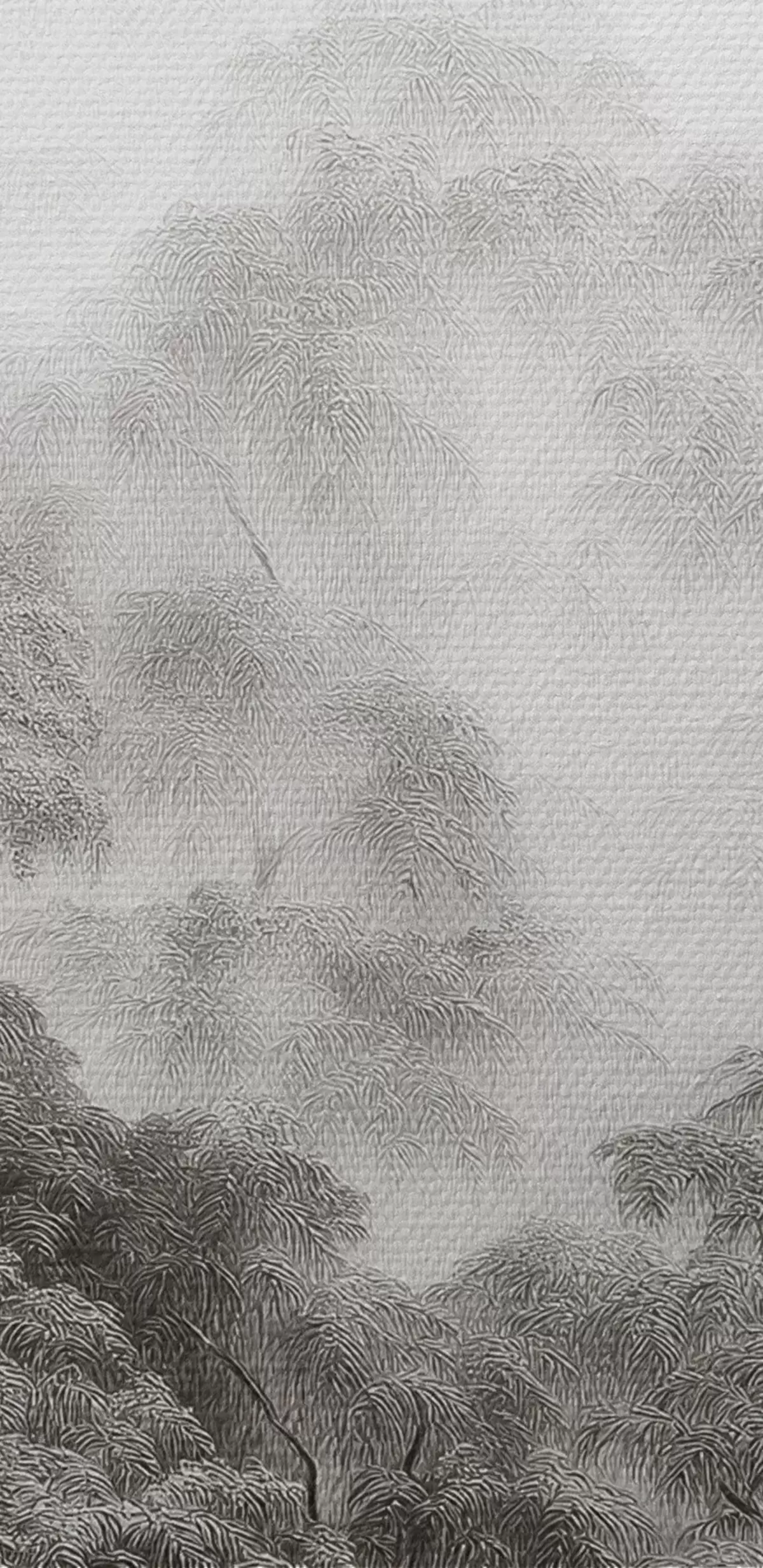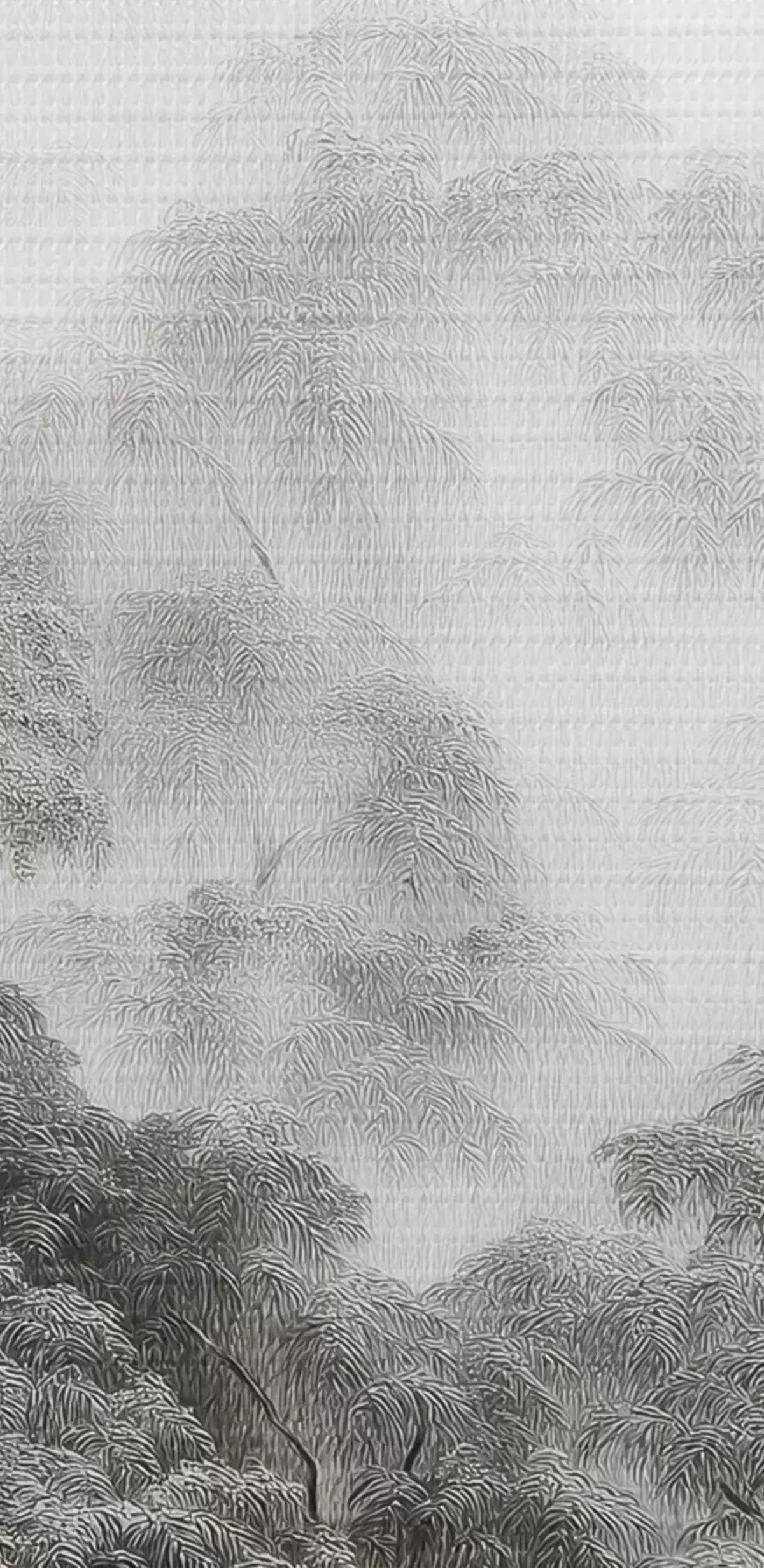 Schilderij Tropisch bos in de mist, palmbomen, grijze kleuren Art. s42371v1