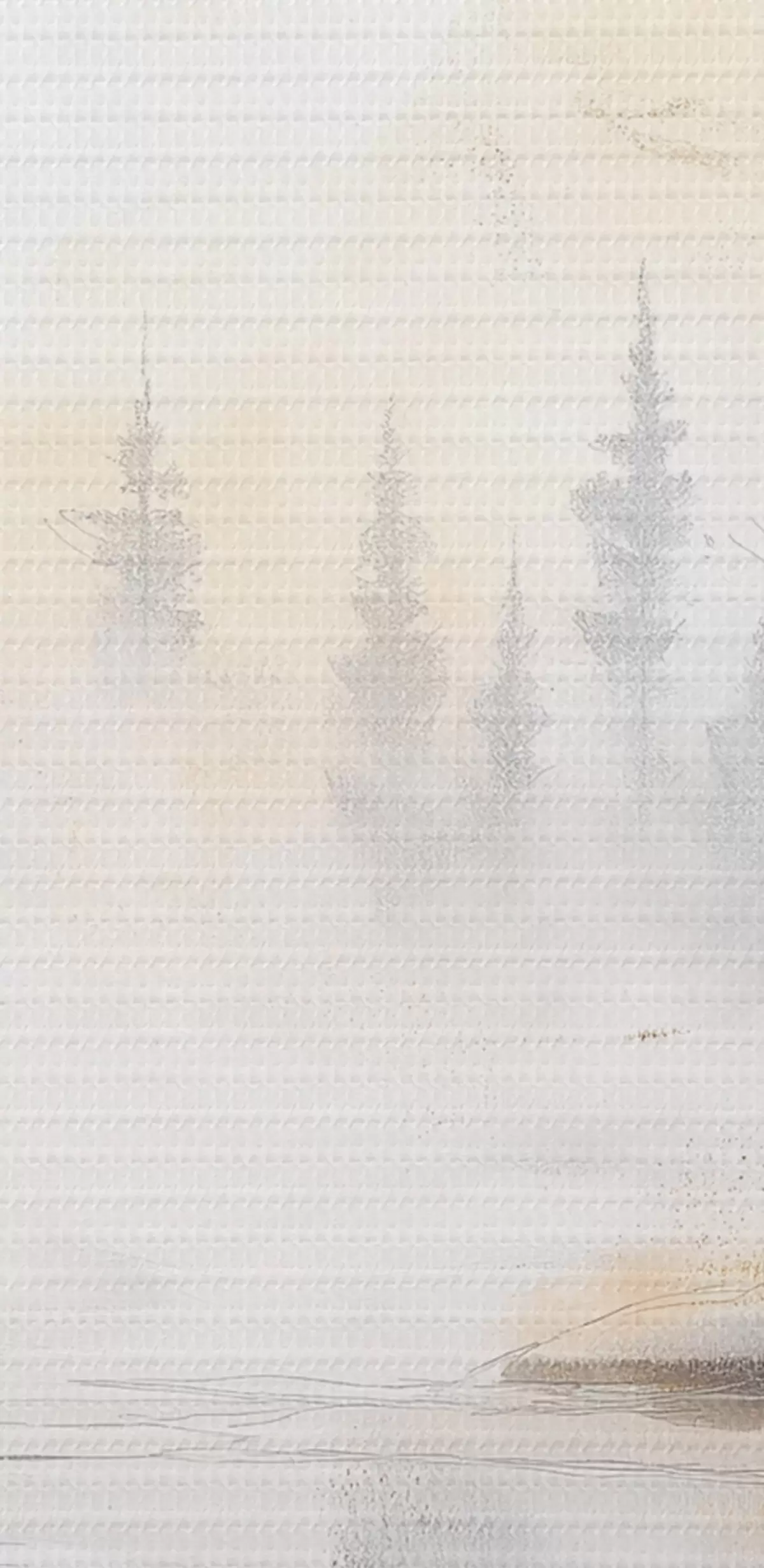 Schilderij Natuurlandschap met rivier, bos en pijnbomen, zachte pastelkleuren Art. s42375