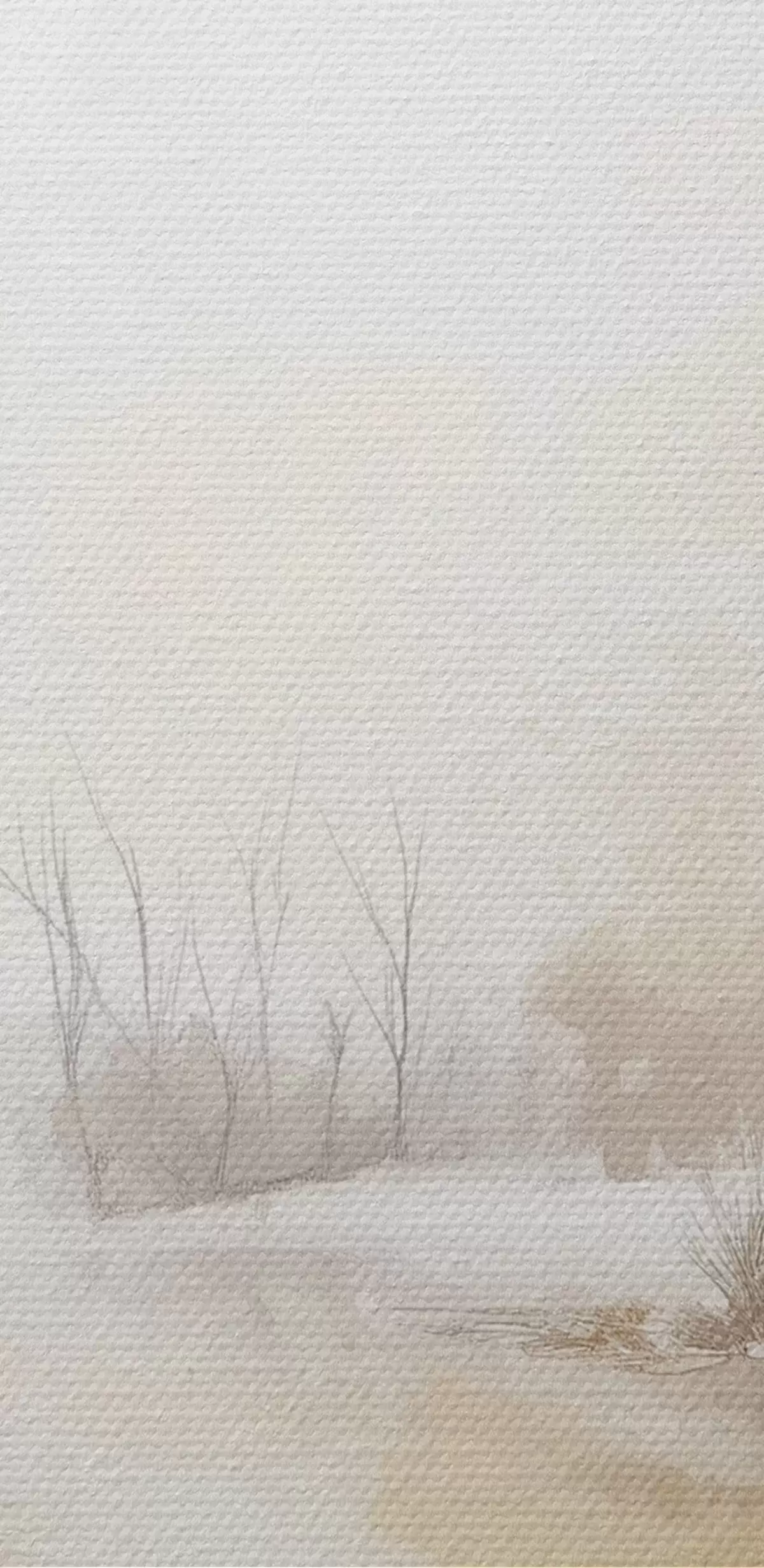 Schilderij Winterlandschap, rivier en bomen, aquarel stijl, beige kleuren Art. s42376