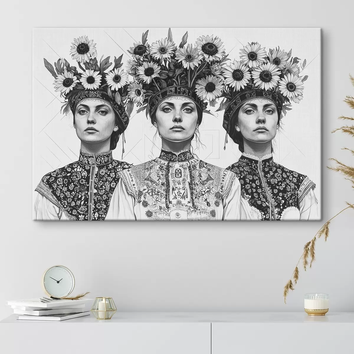 Schilderij Oekraïense vrouwen in etnische kleding met bloemenkransen Art. s42379