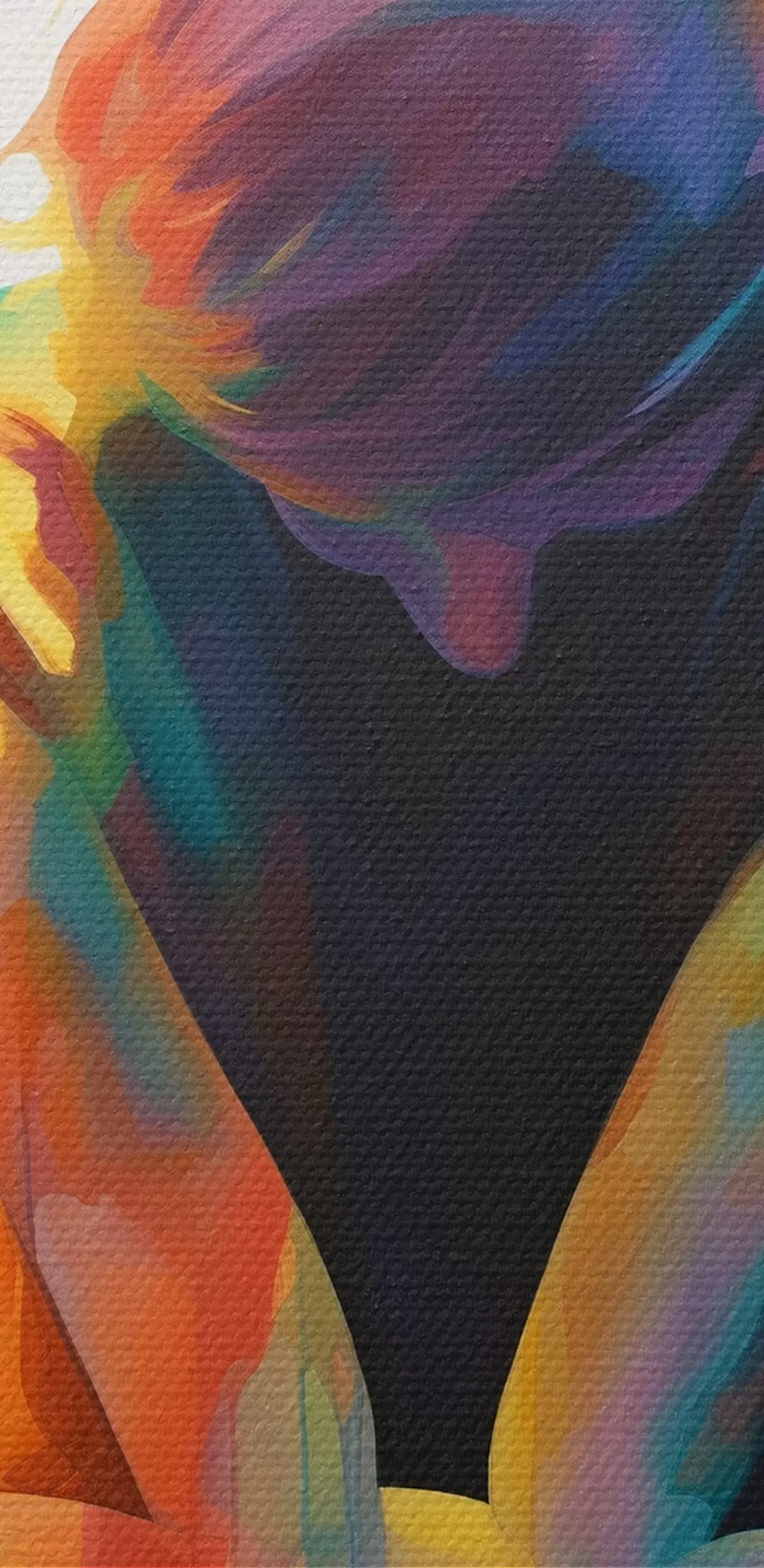 Het schilderij kan direct na ontvangst worden opgehangen. Het schilderij wordt opgespannen op een 2 cm breed houten spieraam.
