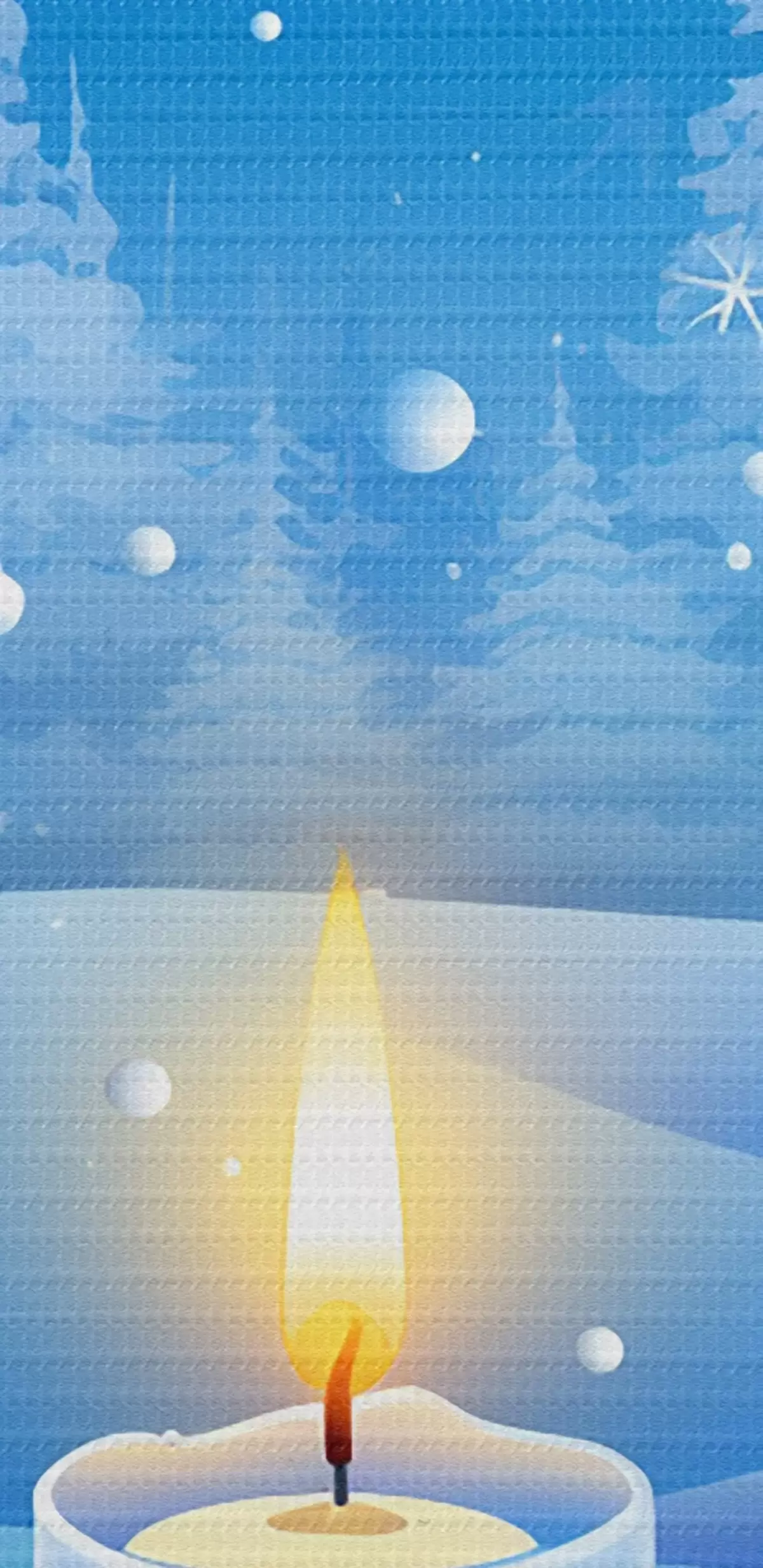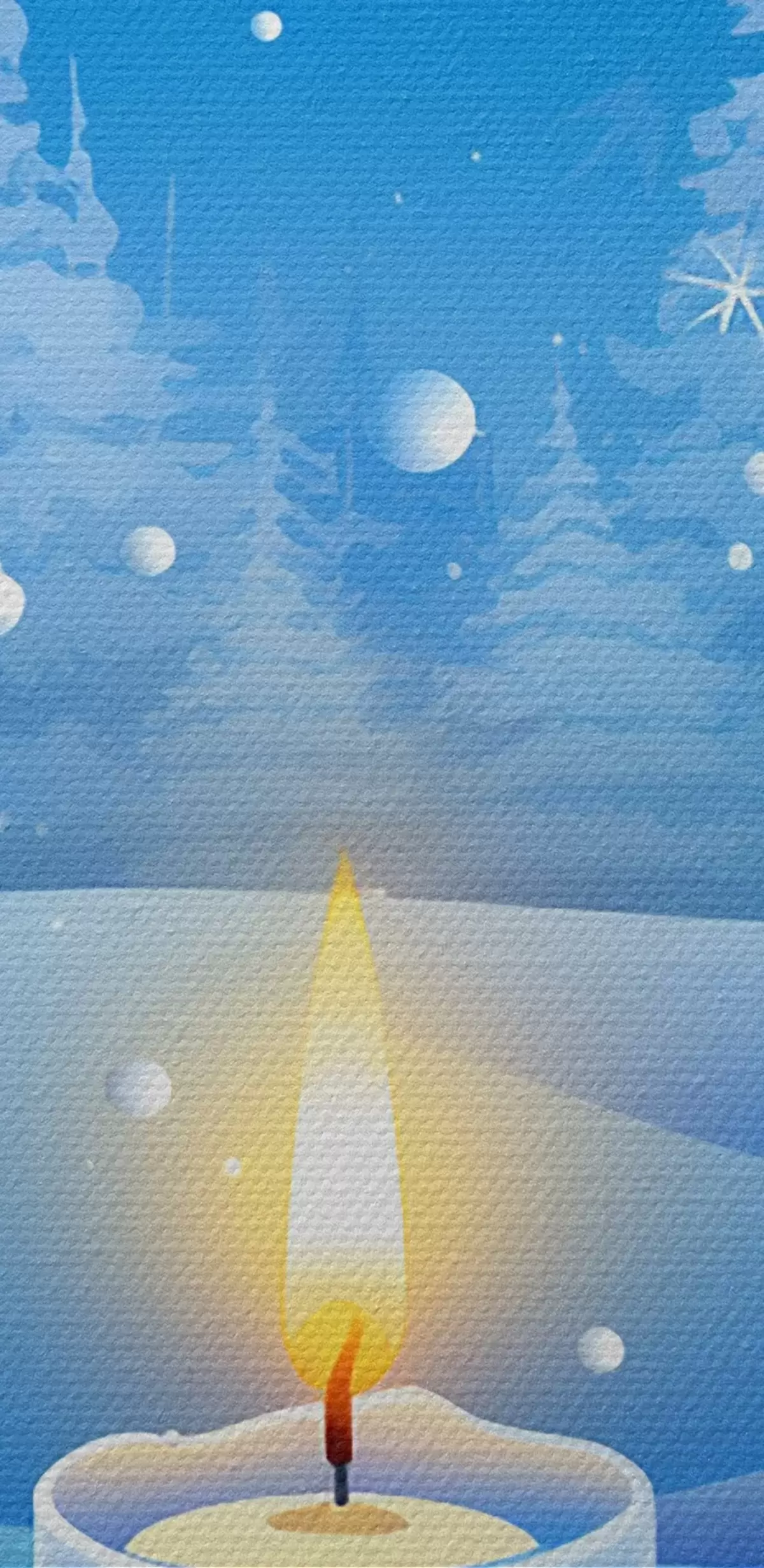 Schilderij Kaars tegen de achtergrond van een winters besneeuwd bos Art. s42383