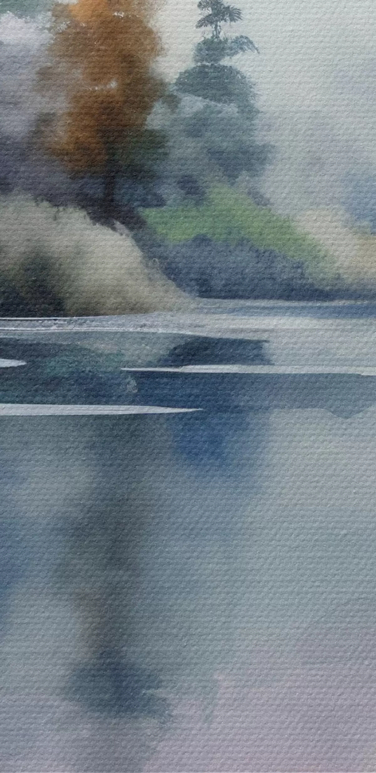 Schilderij Bos in mist tegen de achtergrond van een meer Art. s42384