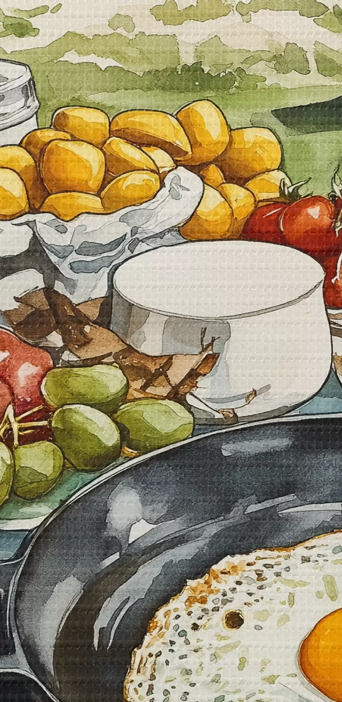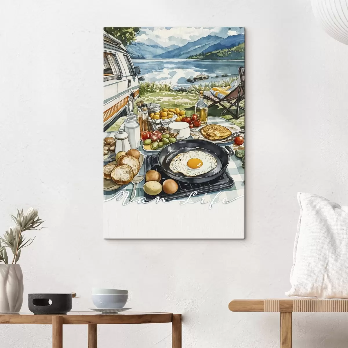 Schilderij Prachtig ontbijt in aquarelstijl, busleven, kamperen, bergen Art. s42429