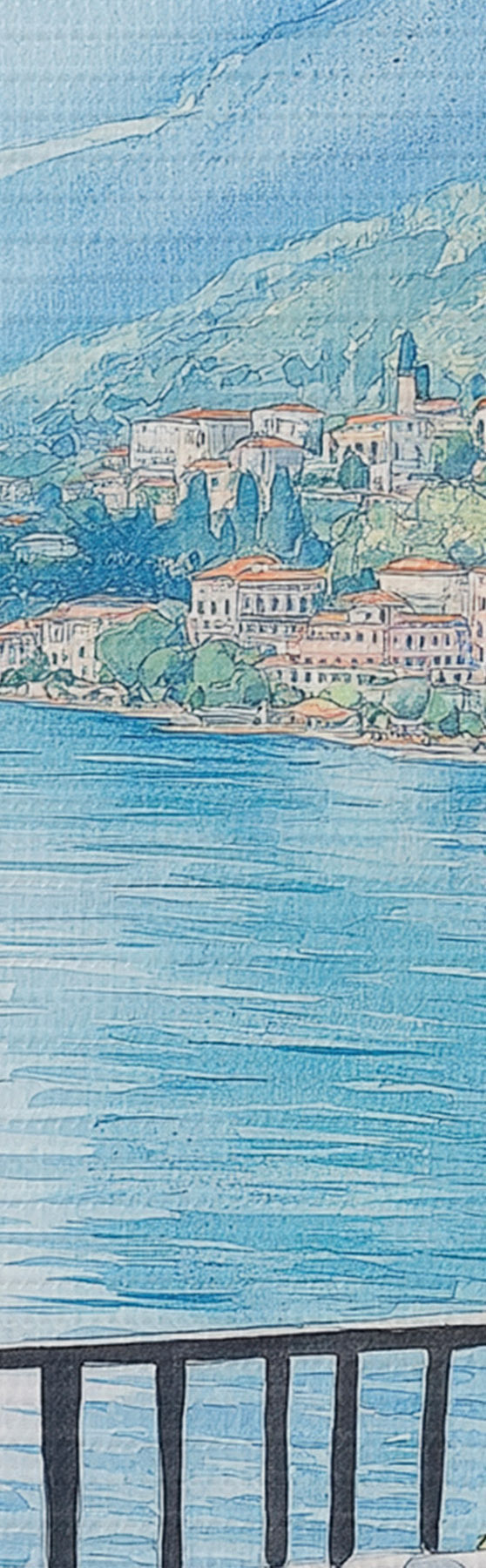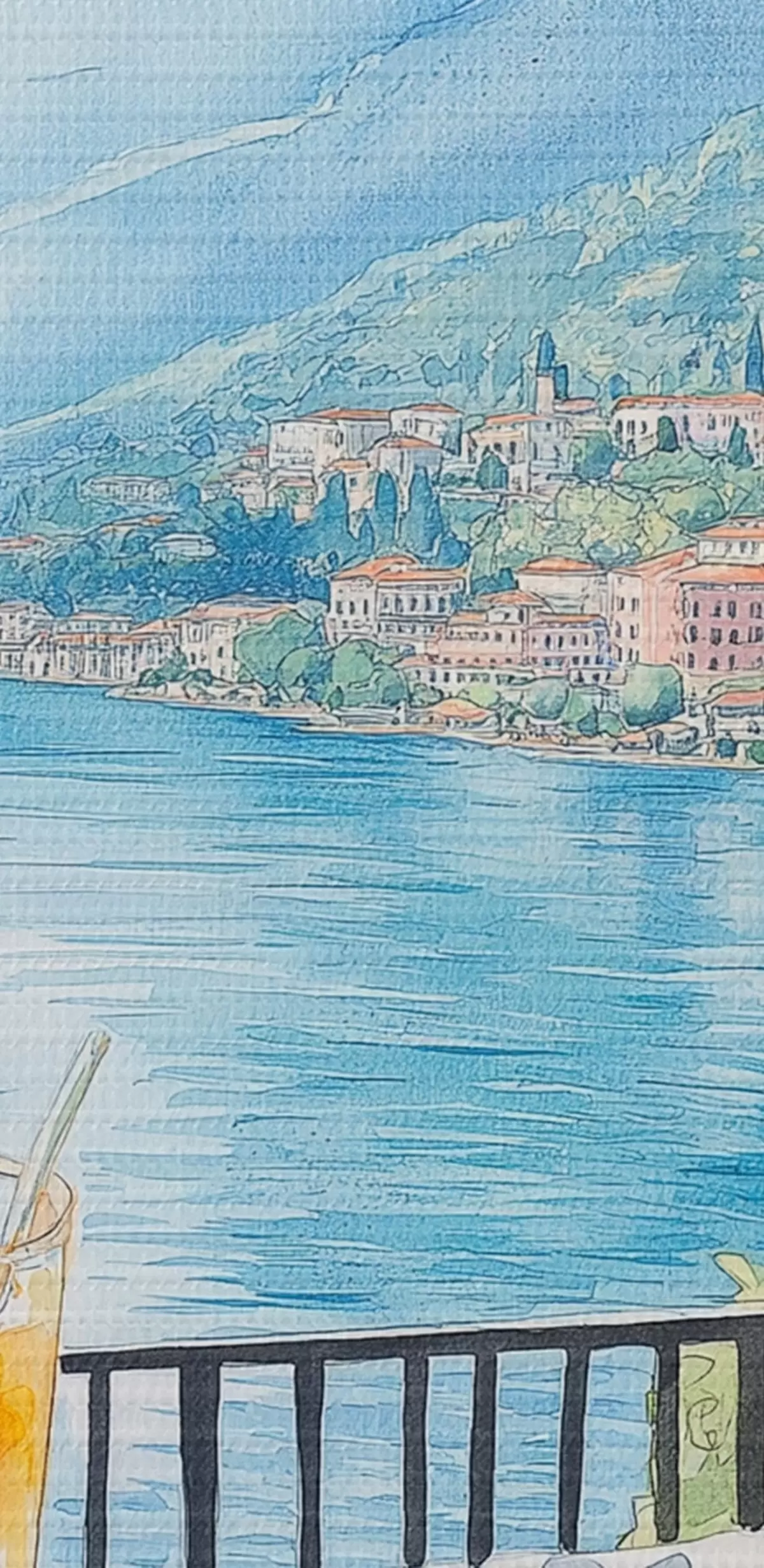Schilderij Brunch in Italië, aquarelstijl, pizza margarita, meer, zomernatuur Art. s42436
