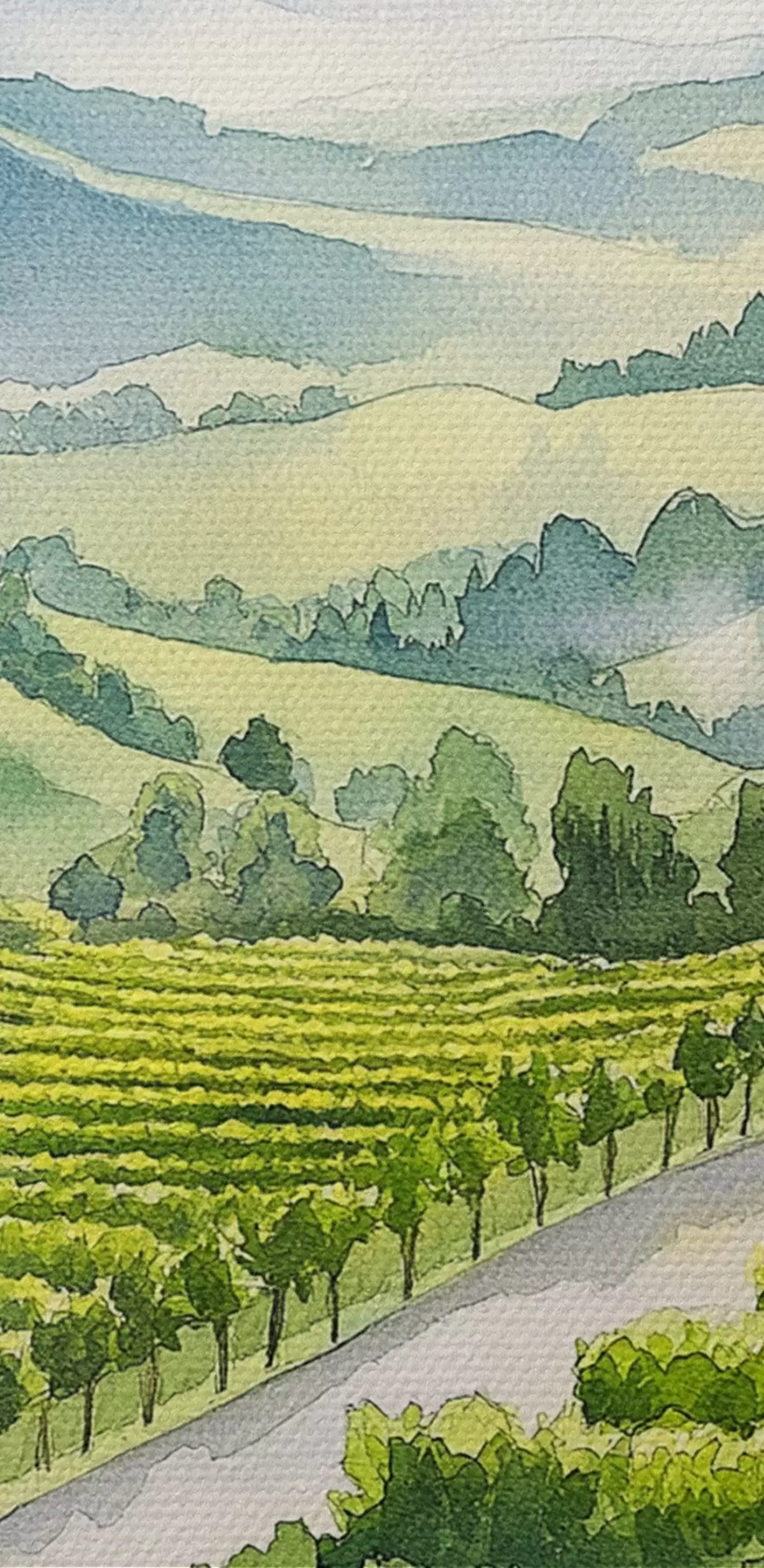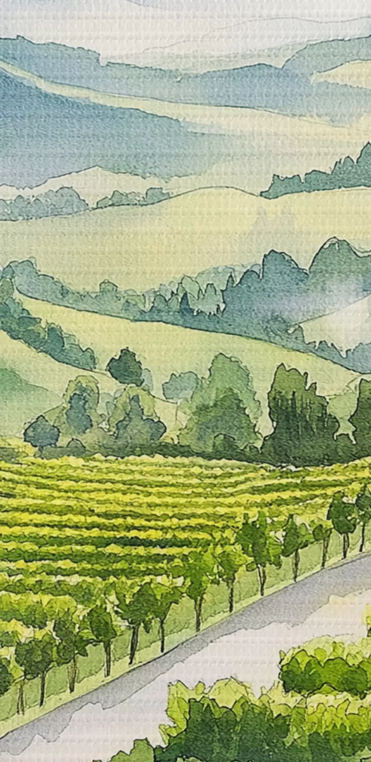 Schilderij Gpape werven, aquarel stijl landschappen, wijnglazen Art. s42444
