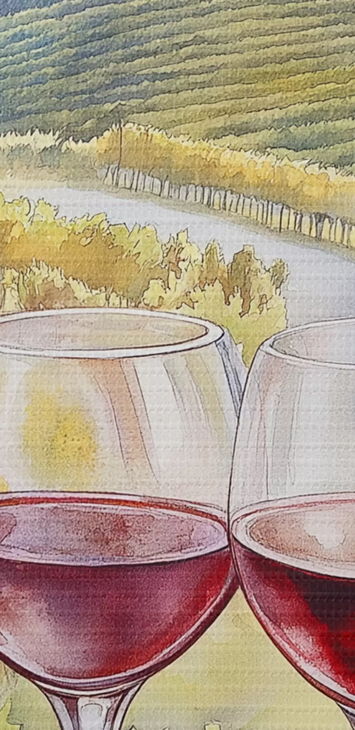 Schilderij Zonsondergang in Toscane, wijnmakerij, oude architectuur, aquarel stijl, Italië Art. s42446