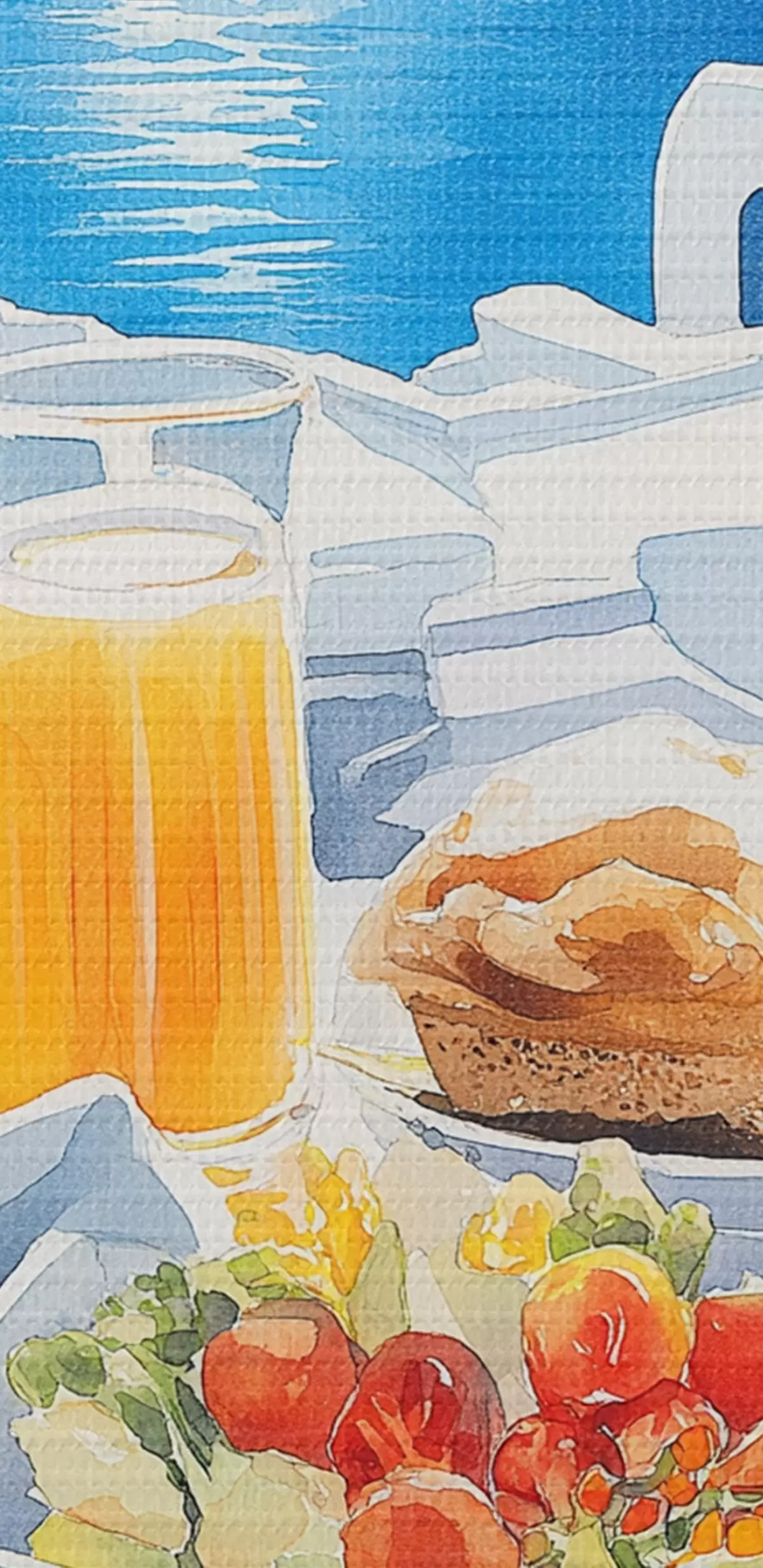 Schilderijen Santorini landschappen, ontbijt, aquarel stijl, oude stad s42454