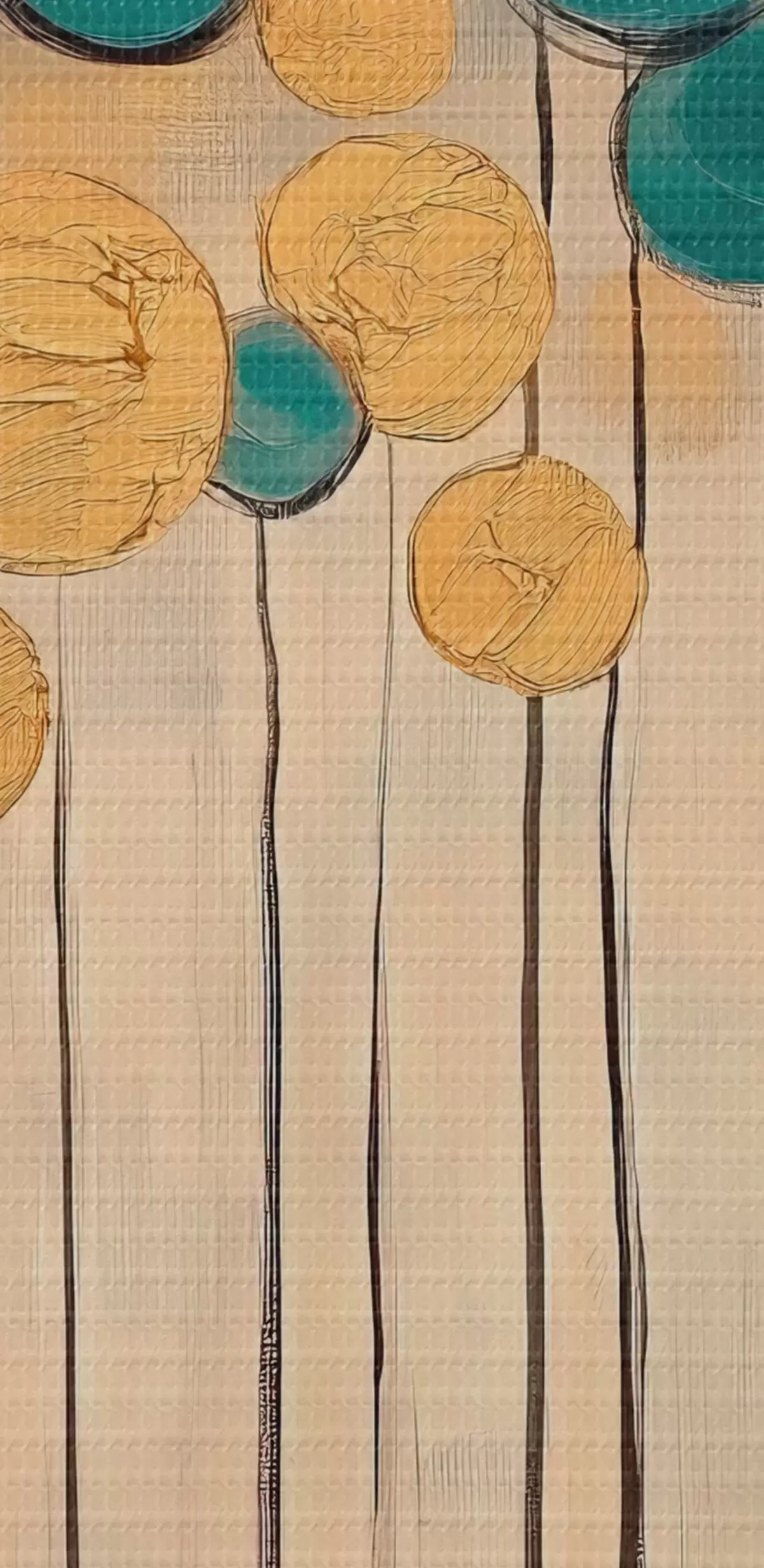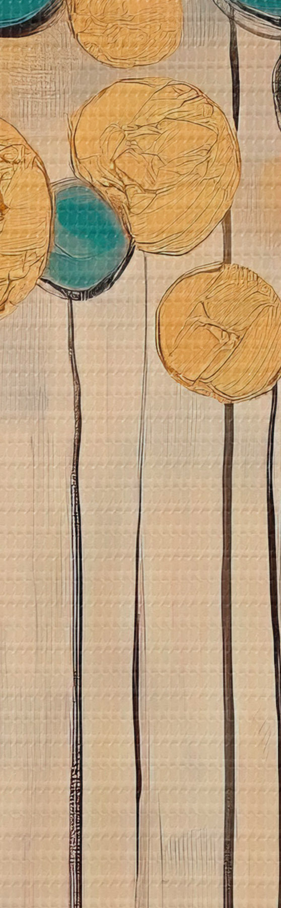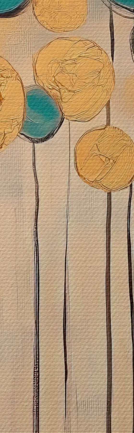 Schilderij Decoratieve abstractie met ronde elementen op blauwe en beige achtergrond Art. s42476