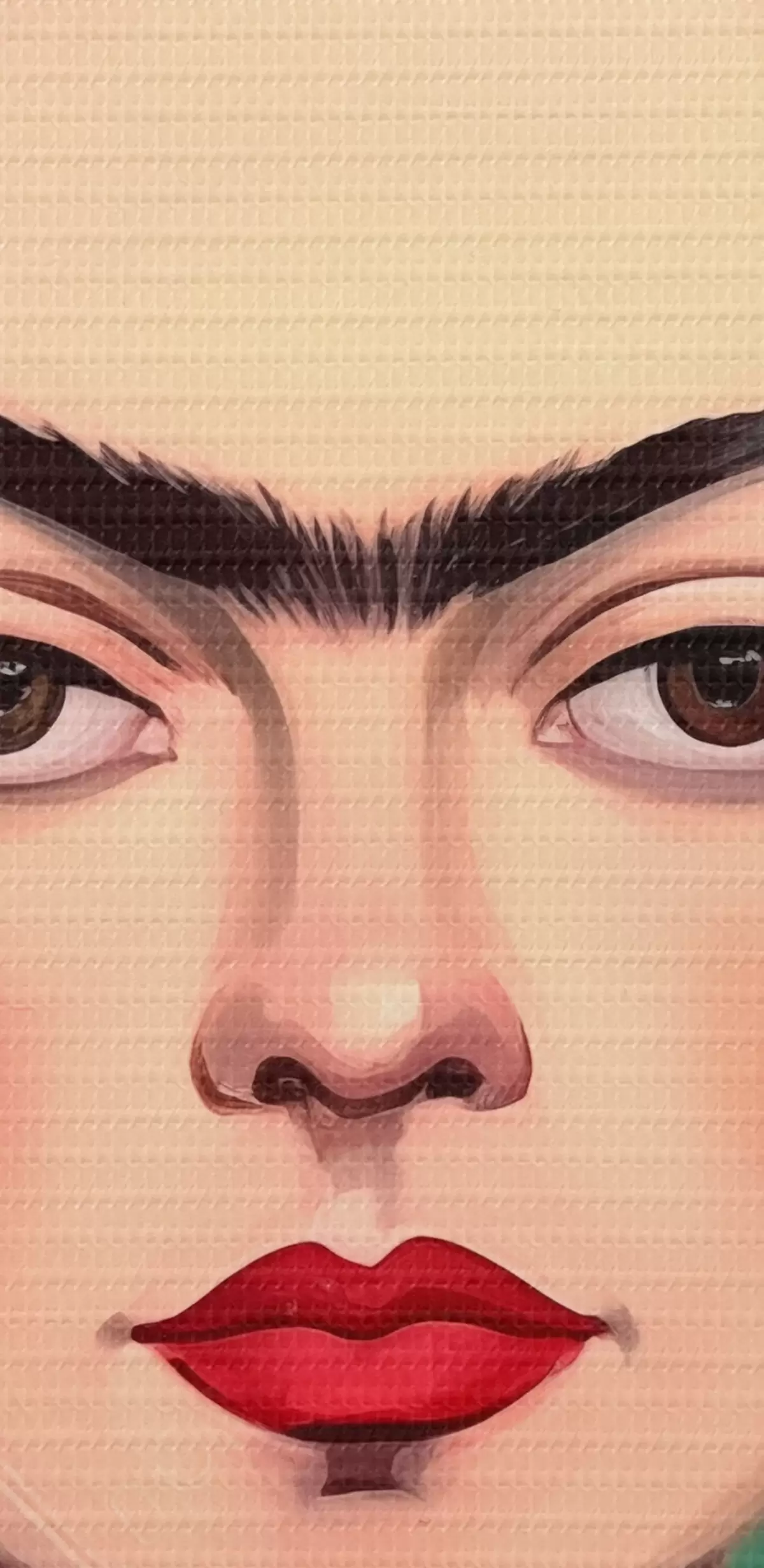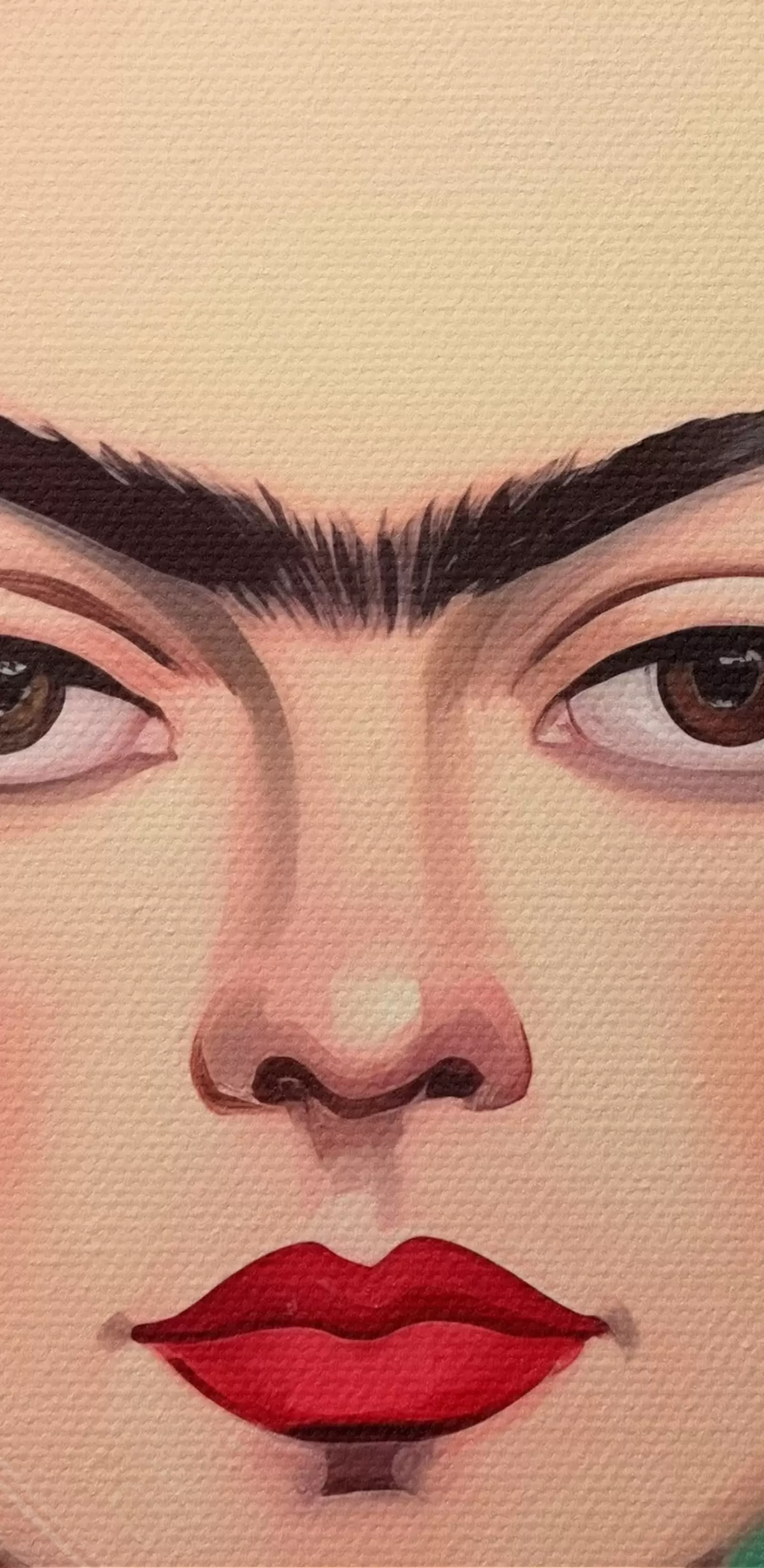 Schilderij Portret van Frida met een bloemenkrans op een groene achtergrond Art. s42485