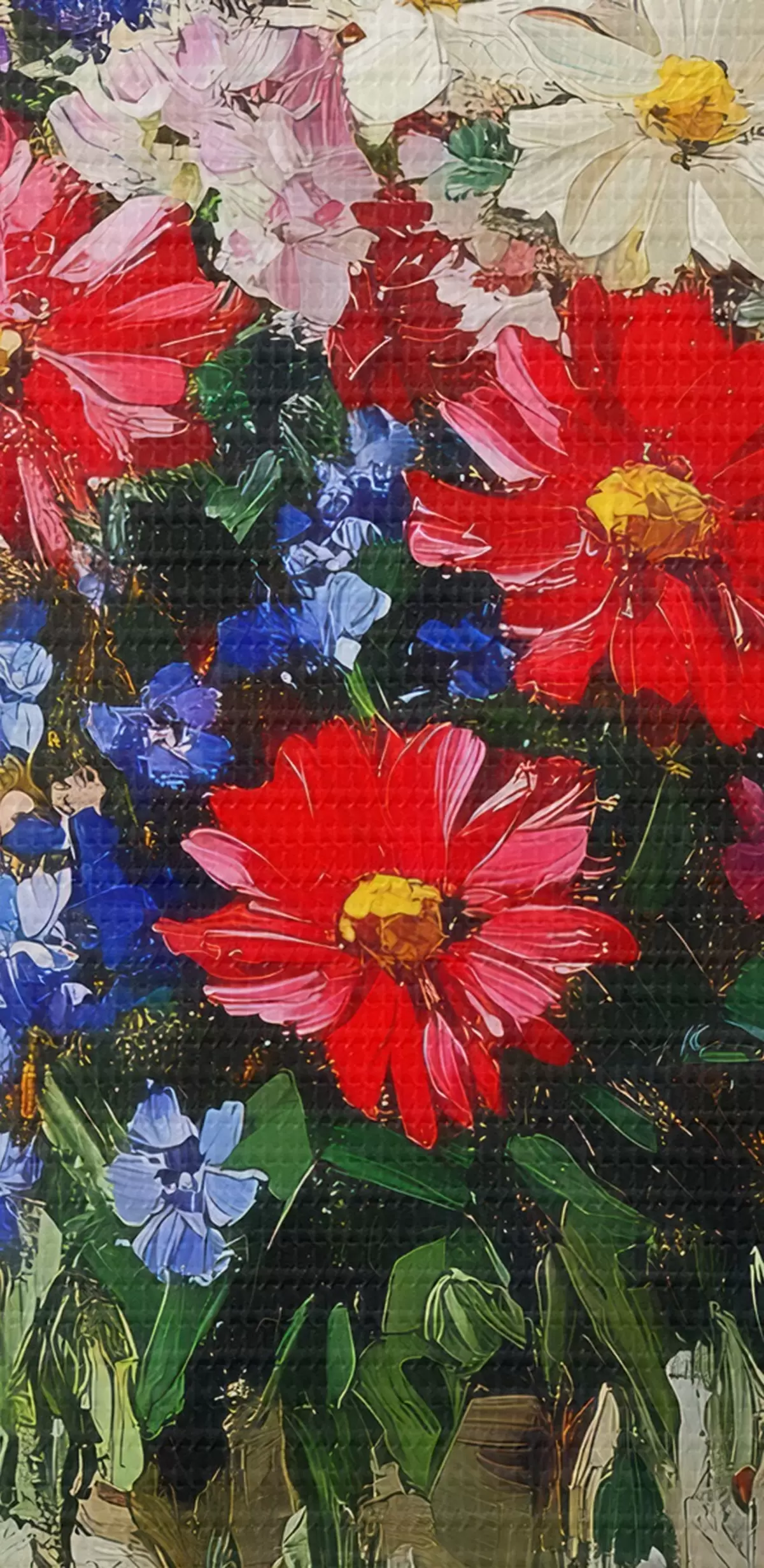 Er zijn drie soorten materiaal te bestellen: Economic Canvas - een dicht en duurzaam materiaal voor digitaal printen, identiek aan schildersdoek, waterdicht oppervlak, realistische weergave van details, materiaal met gemiddelde korrel. Premium Canvas - de textuur lijkt op die van schildersdoek (verweven kleine draden). Zachte, gedetailleerde reproductie van de afbeelding op een mat oppervlak. Eco-Premium - hoogwaardige 100% katoenen stof. Dankzij de natuurlijke katoenvezels is het materiaal duurzaam en slijtvast. Uitstekende kleurweergave en detail.