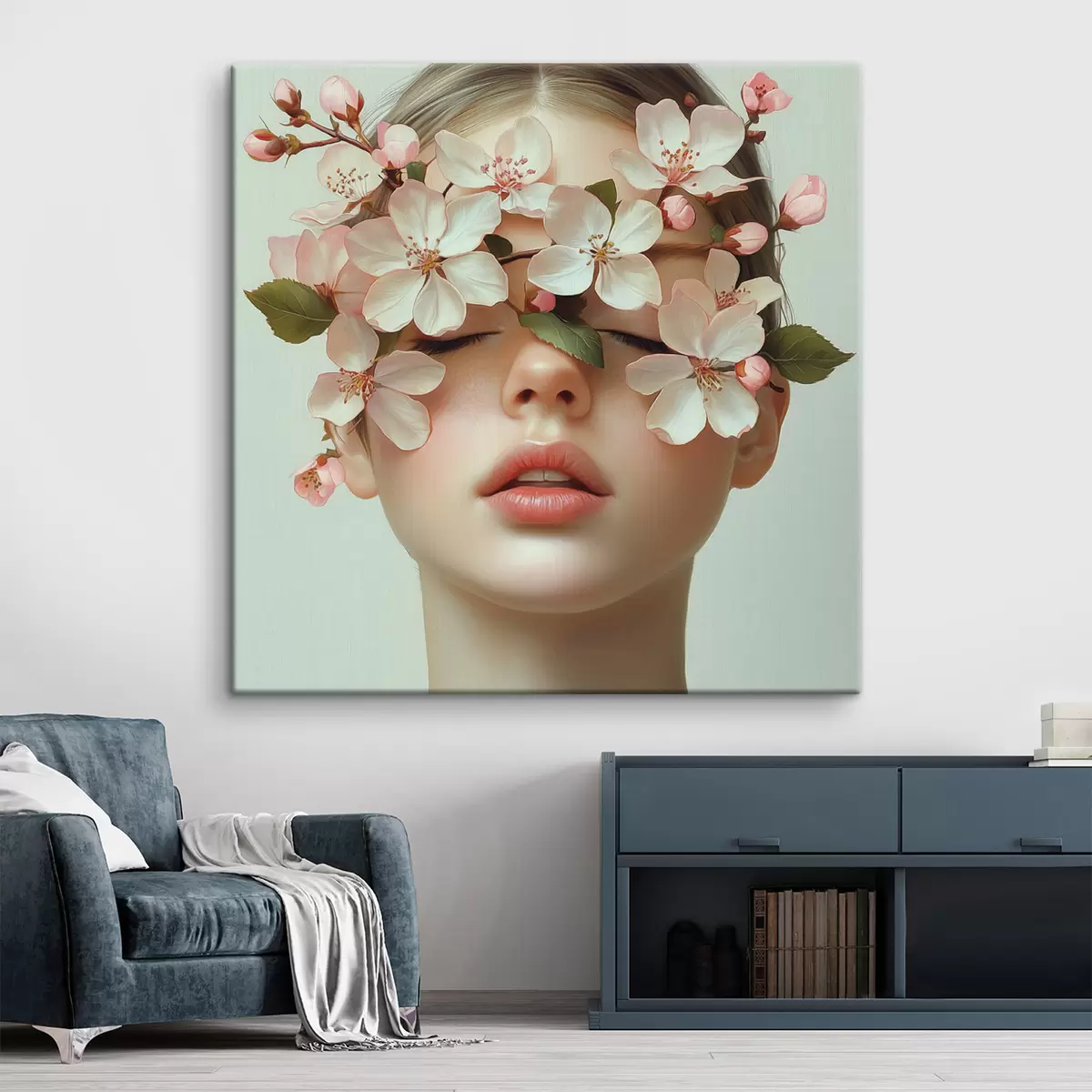 Schilderij Portret van een meisje met bloemen op haar gezicht Art. s42506