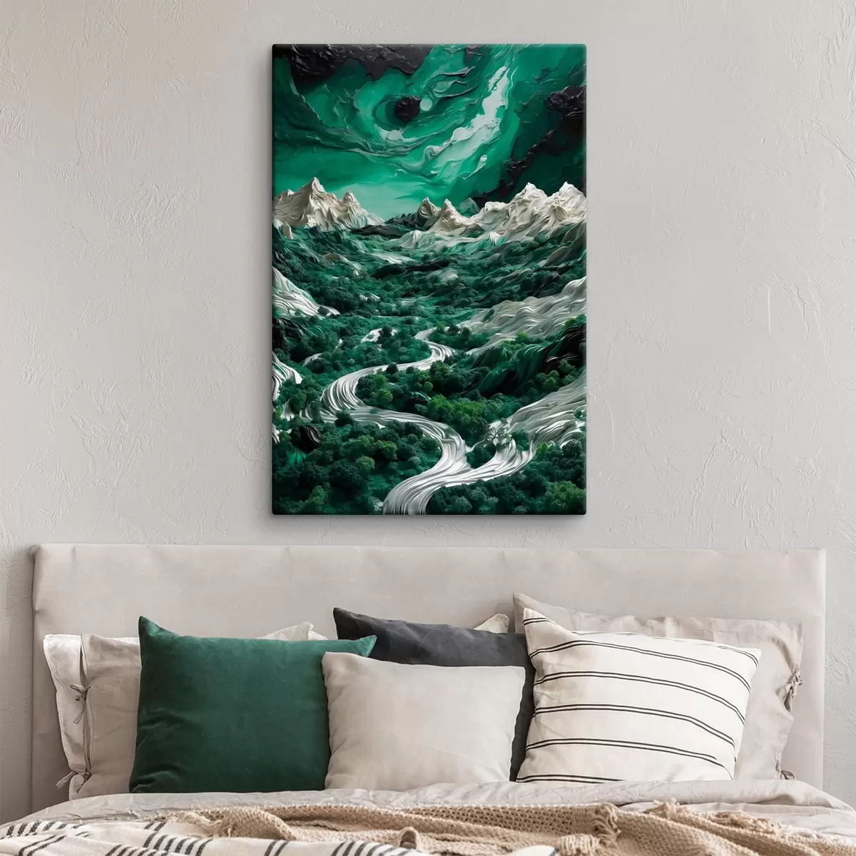 Je kunt het schilderij ophangen aan schroeven. Hiervoor leveren we bevestigingen bij onze foto's, zodat je de foto gemakkelijk kunt ophangen.