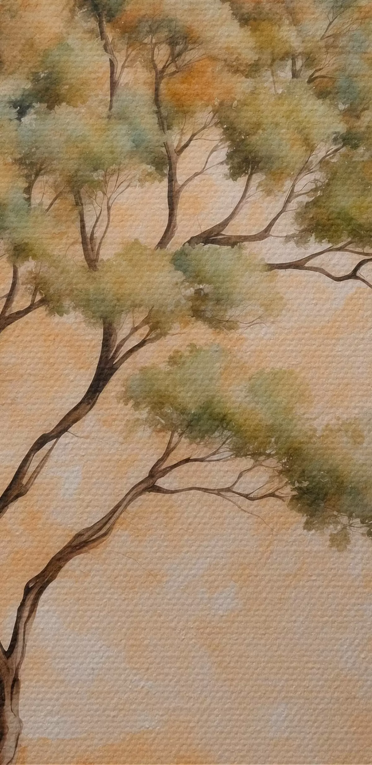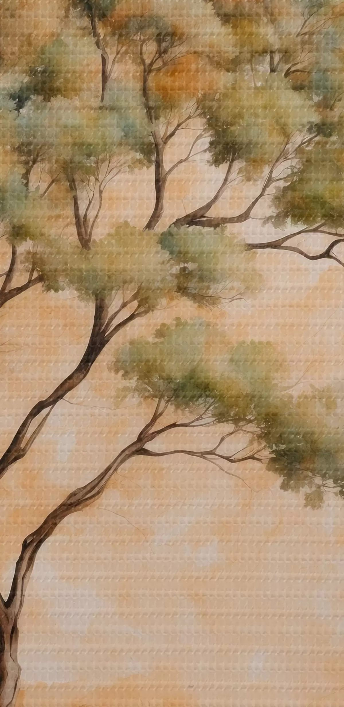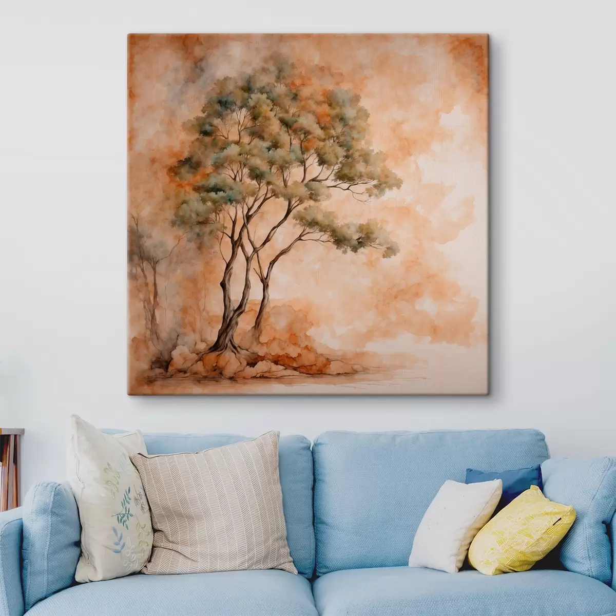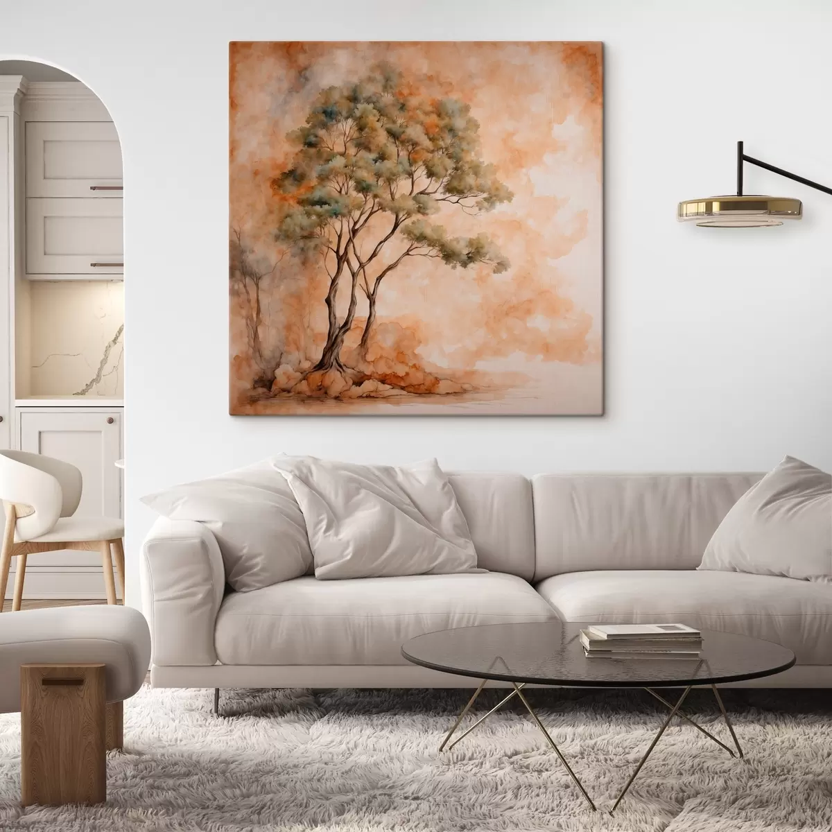 Schilderij Boom op oranje en witte achtergrond in aquarel schilderstijl Art. s42514