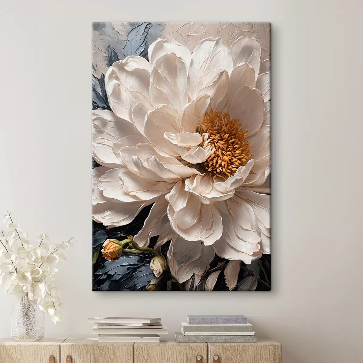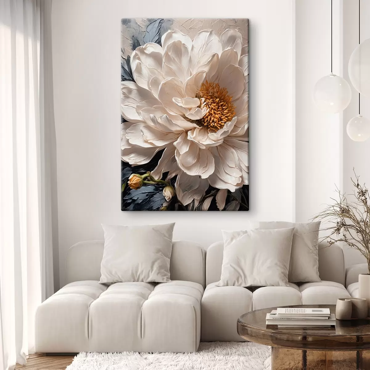 Schilderij Witte bloem op blauw-beige achtergrond Art. s42523