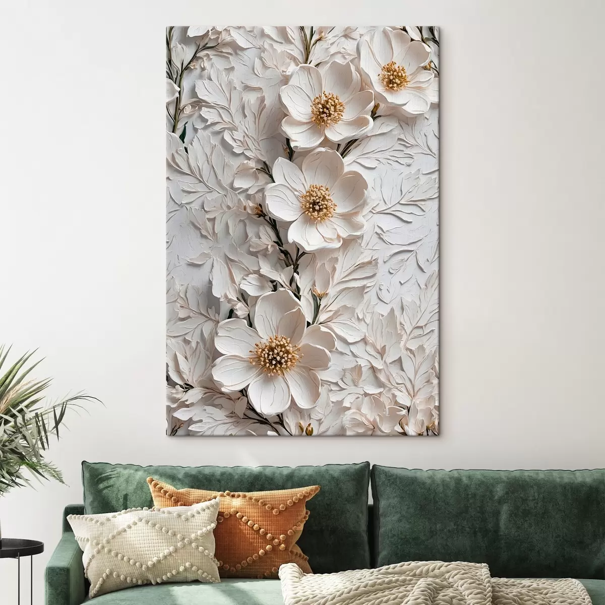 Schilderijen Witte bloemen en stengels in olieverfstijl s42546
