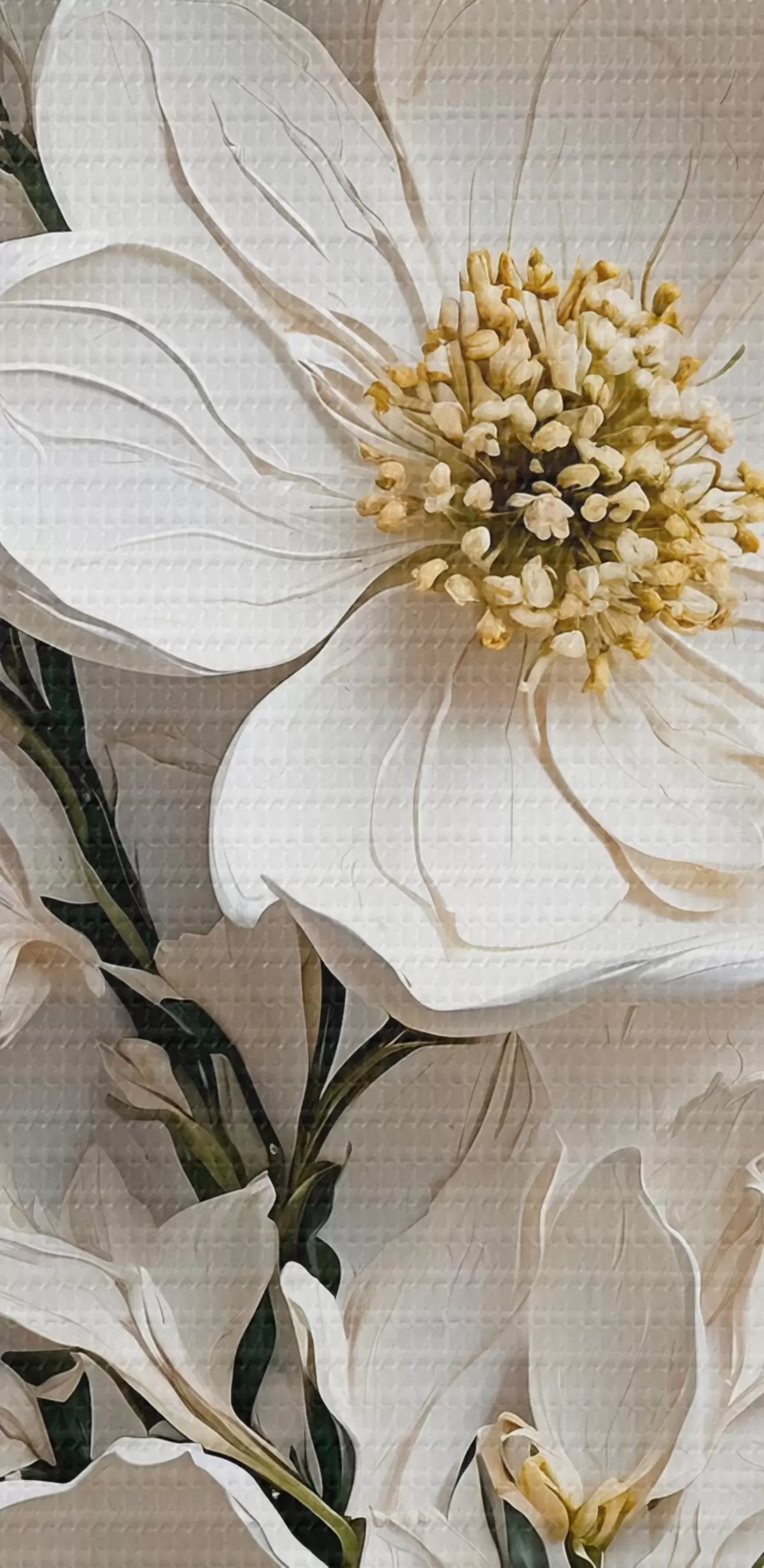 Schilderij Witte bloemen en stengels in olieverfstijl Art. s42546