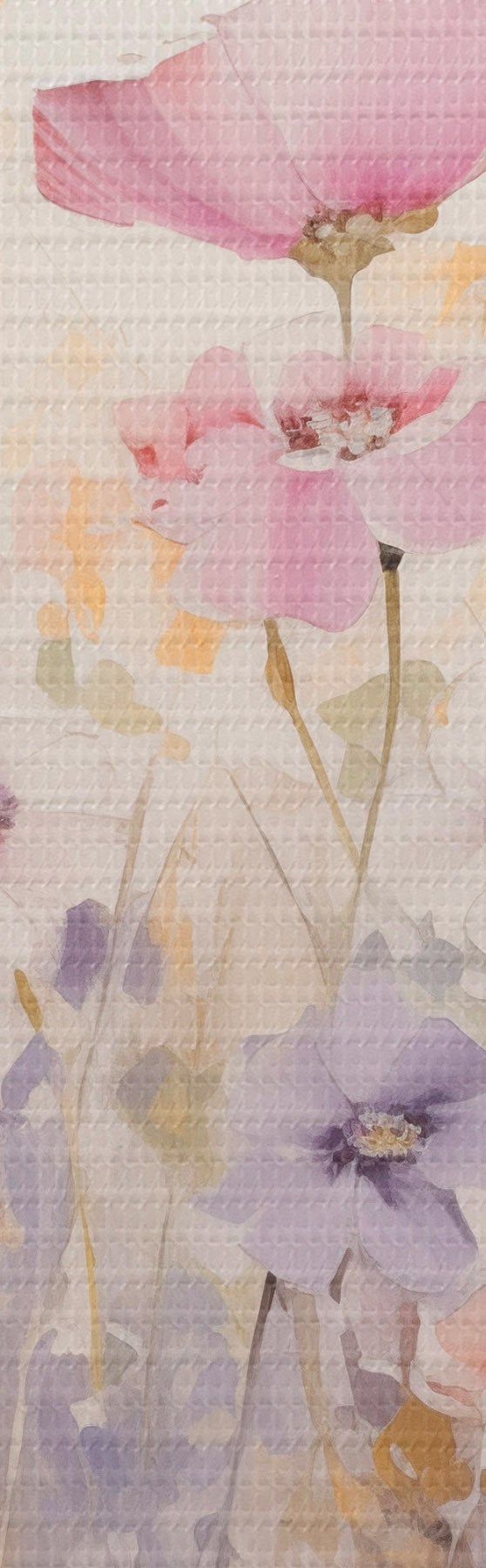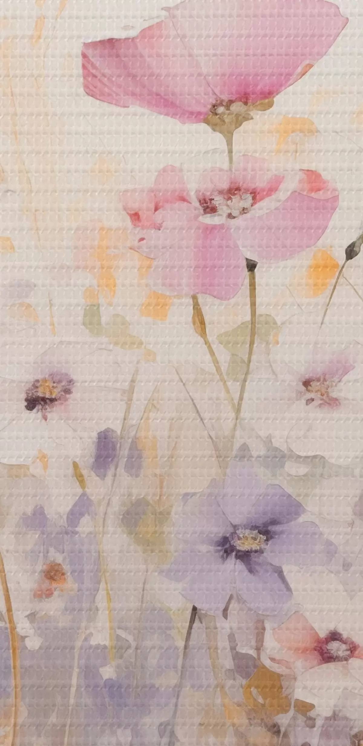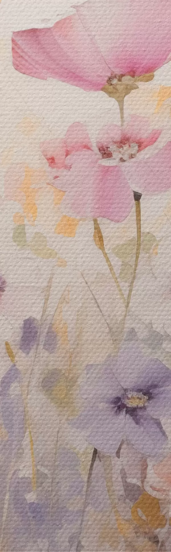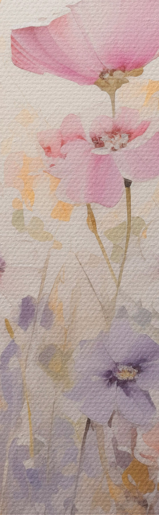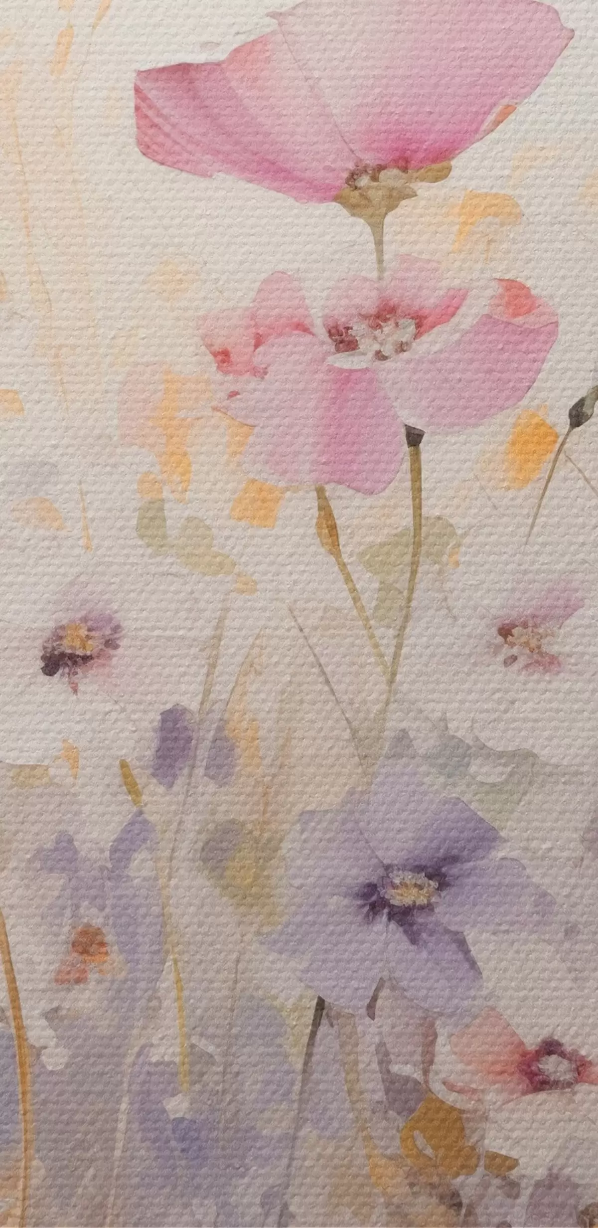 Schilderij Een weide met aquarelbloemen in delicate roze, paarse en witte tinten, die een sfeer van lichtheid en harmonie creëren. Art. s42557