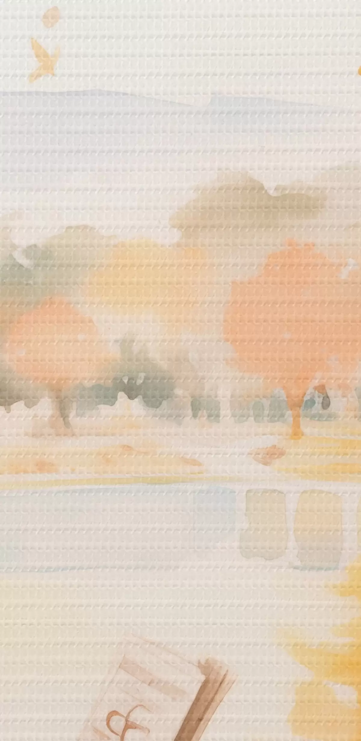 Schilderij Een meisje dat een boek leest bij een open raam in een herfstlandschap, met lichte bomen op de achtergrond en een kopje thee in de buurt. Art. s42572