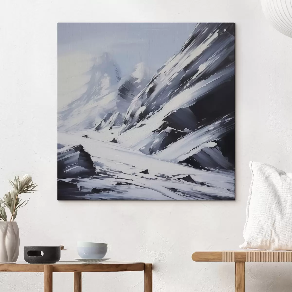 Schilderijen Met sneeuw bedekte rotsen imiteren penseelstreken van schilderij s42585