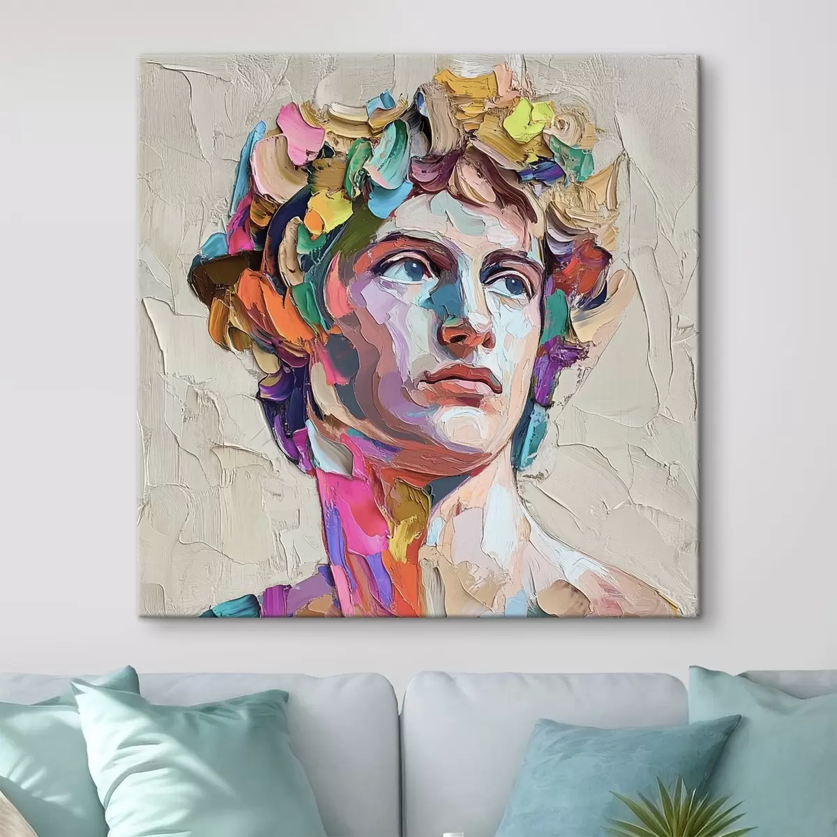 Schilderij Hoofd van David met veelkleurige strepen Art. s42607