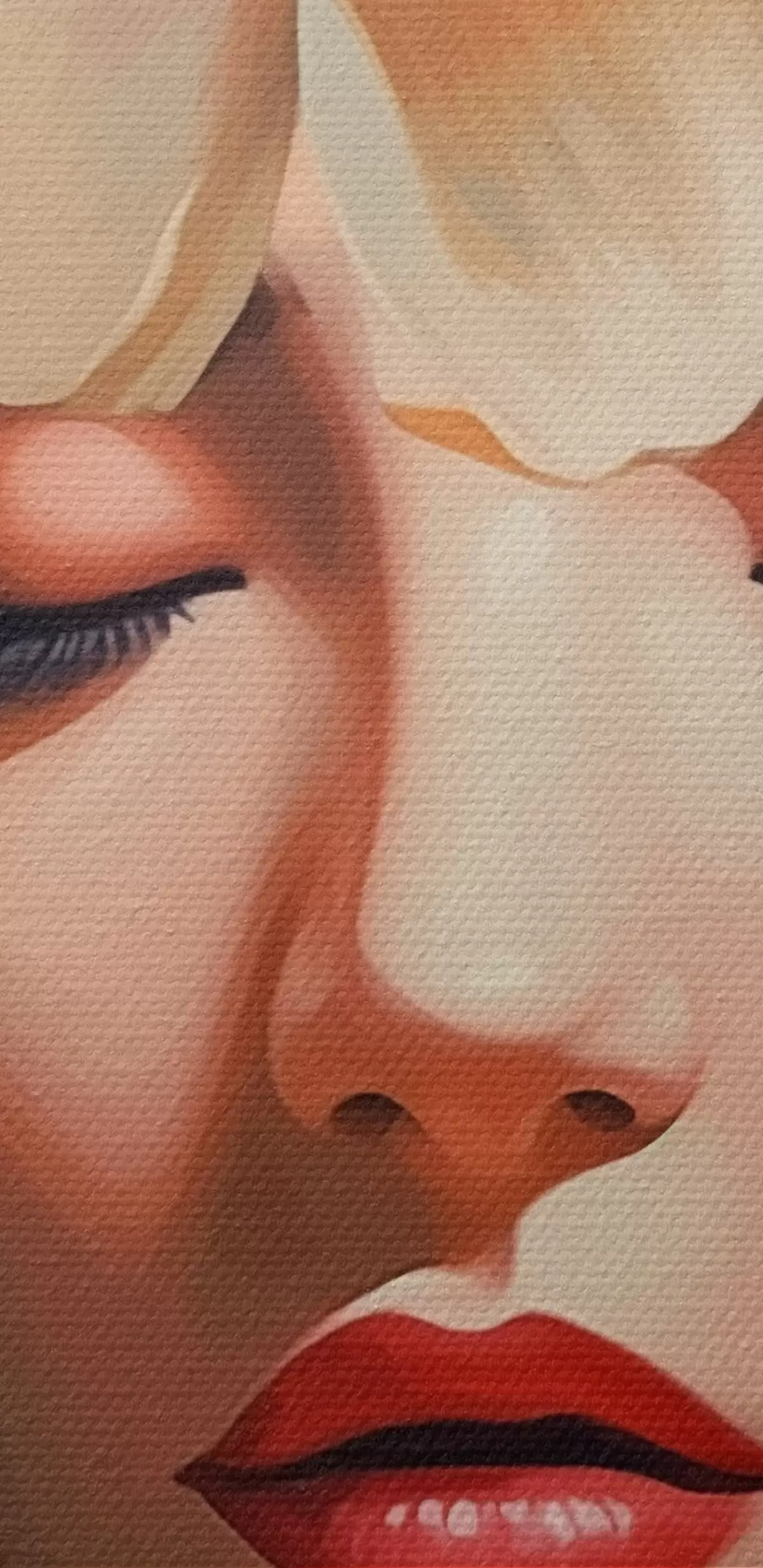 De fijne weving van draden op dit doek lijkt op het oppervlak van professionele schildersdoeken.