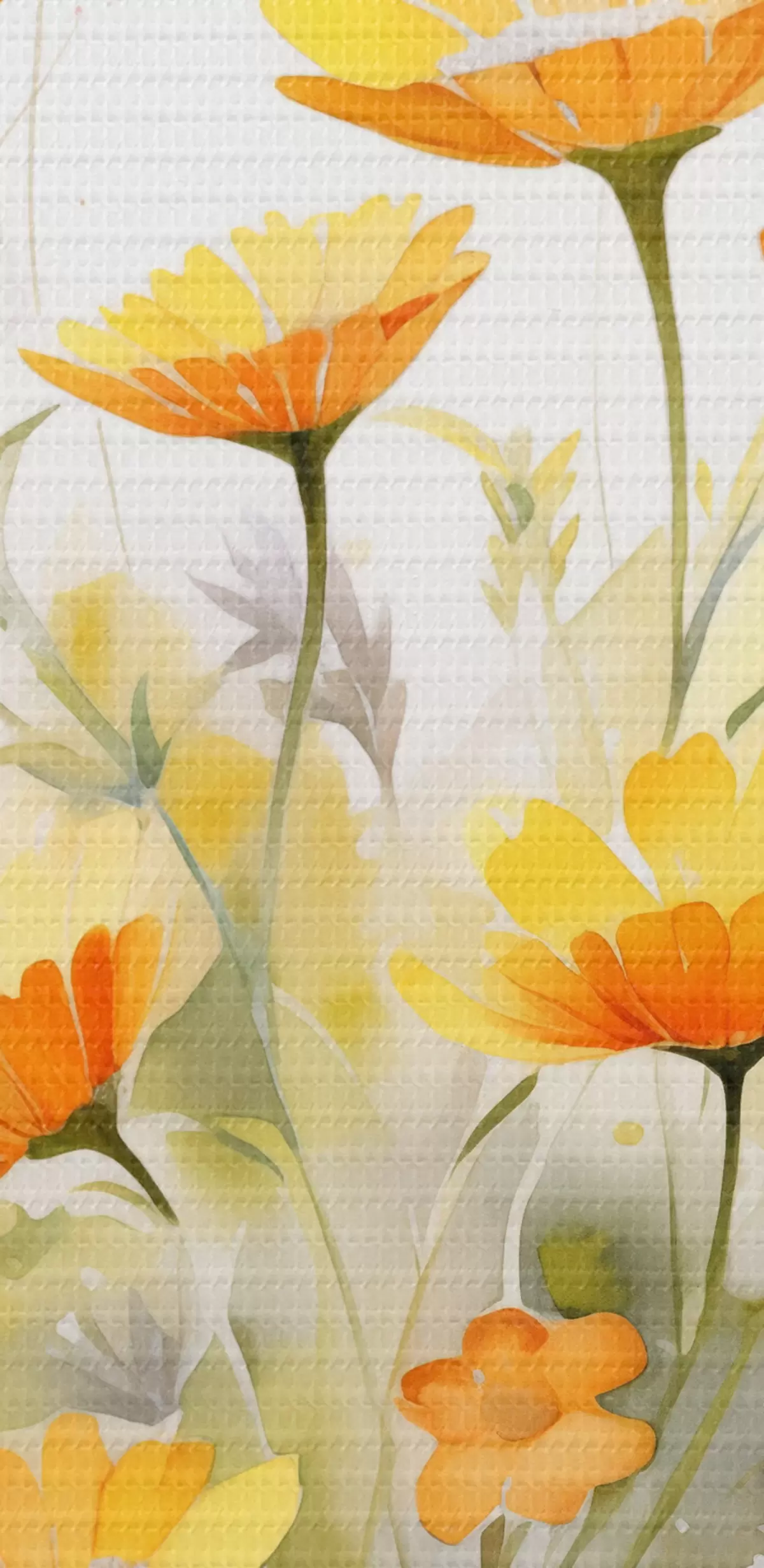 Schilderij Een levendig aquarelachtig bloemenveld met oranje en witte madeliefjes, met een vlinder fladderend in de buurt Art. s42714