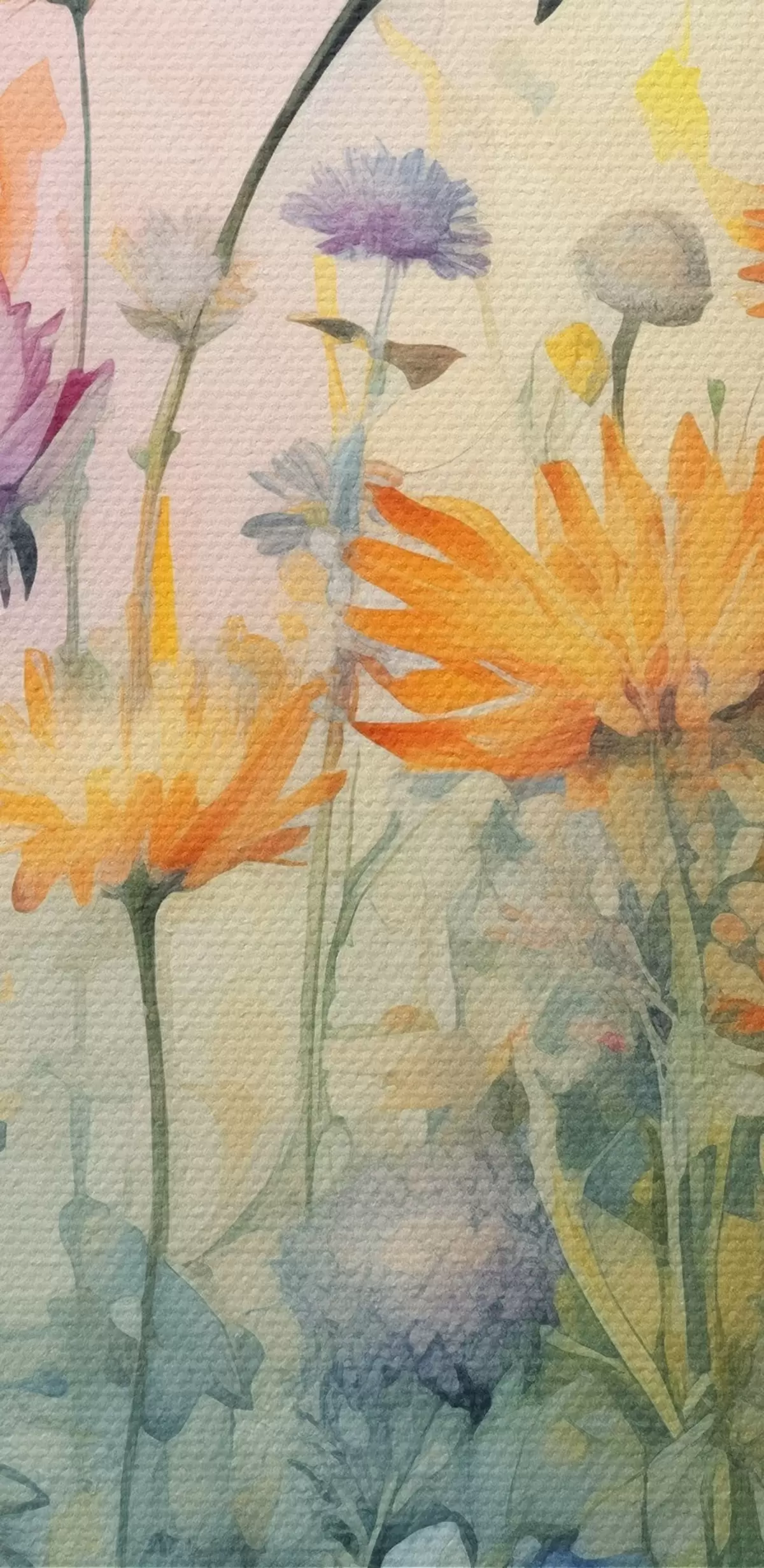 Schilderij Een levendig veld van hoge en weelderige wilde bloemen tegen een zachte pastelkleurige aquarelachtige achtergrond Art. s42726