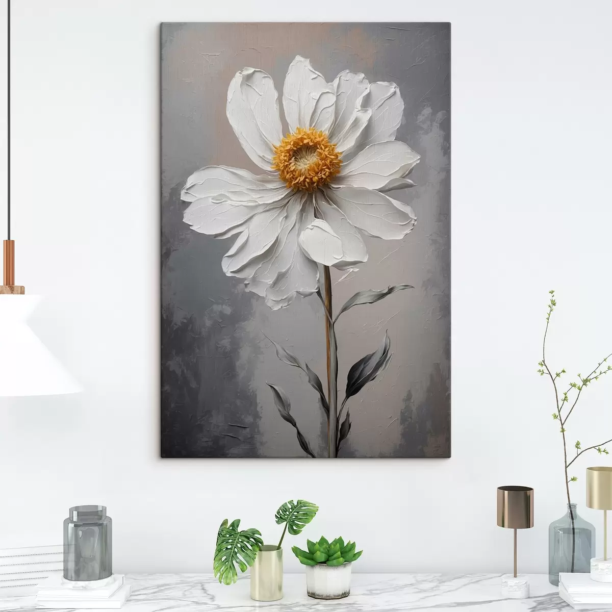 Schilderij Kamille op witte achtergrond in olieverfschilderijstijl Art. s42758
