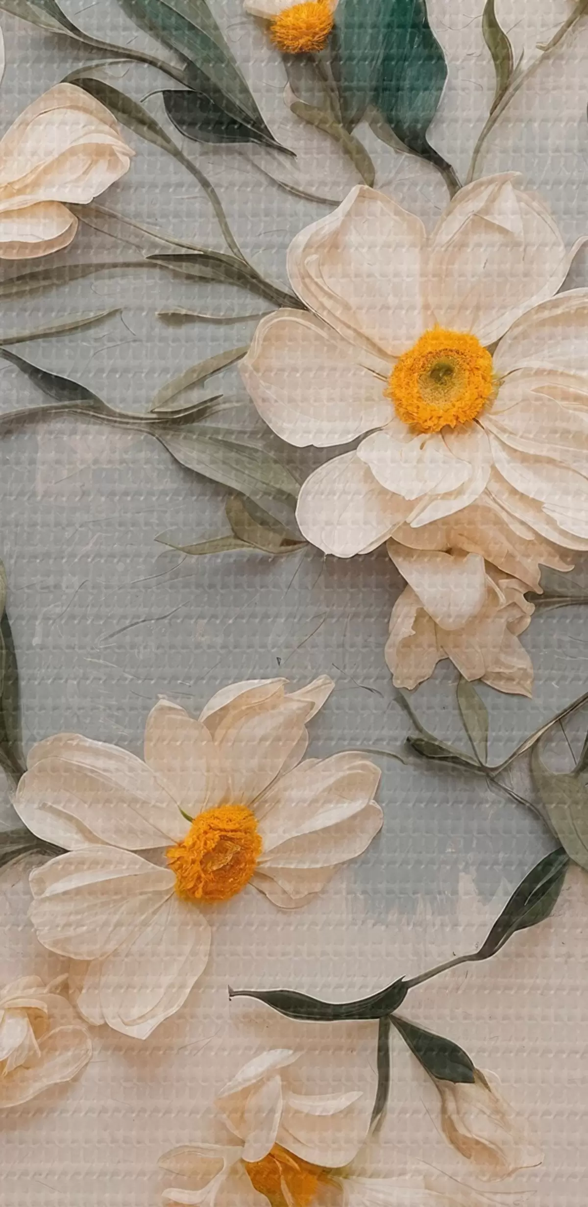 Schilderij Witte bloemen en bladeren op witte en grijze achtergrond Art. s42764
