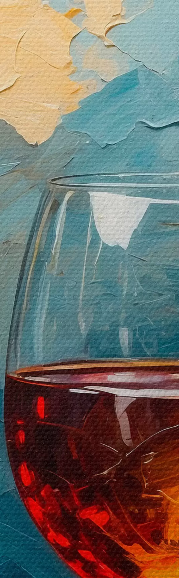 Schilderij Druiven, glas en wijnfles op abstracte acrylachtergrond Art. s42772