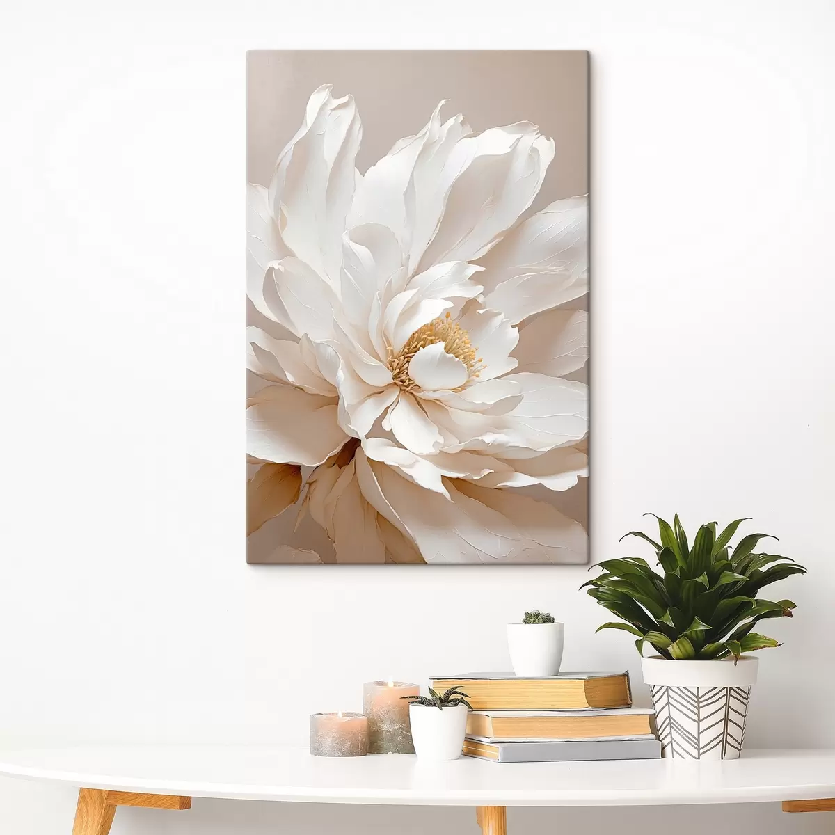 Schilderij Witte bloem op beige achtergrond Art. s42778