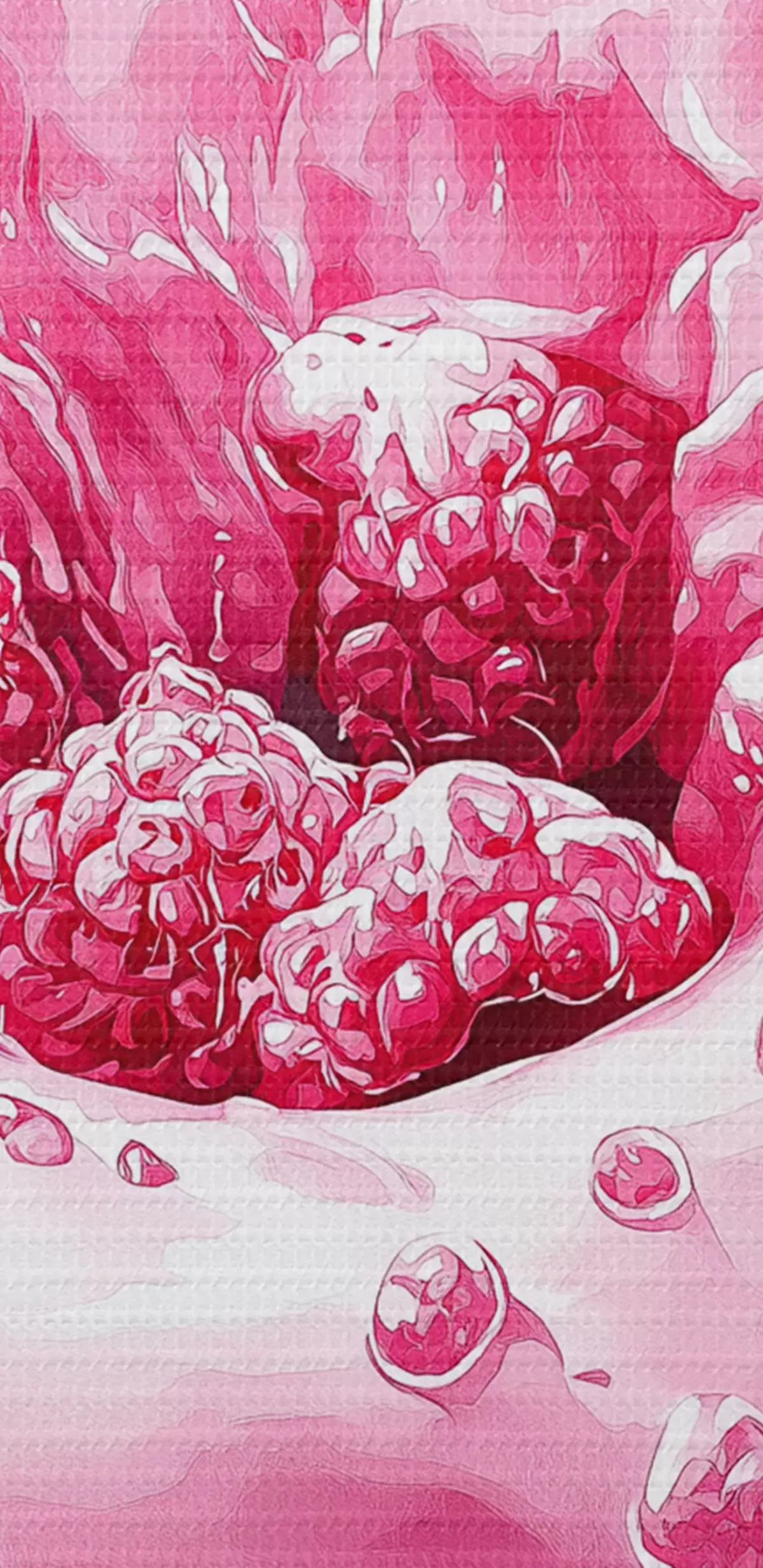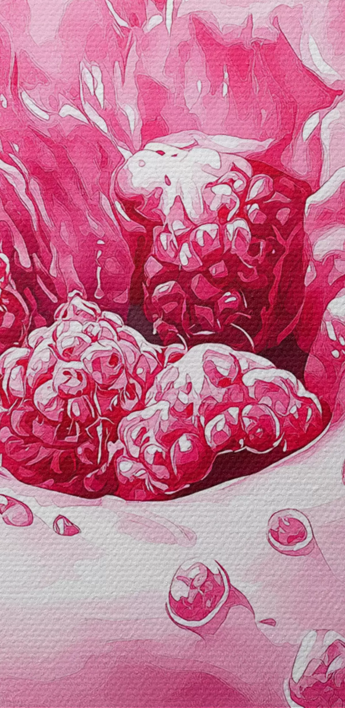 Schilderij Heerlijke donat op het bord, sprankelende room, frambozen, ijs Art. s42788