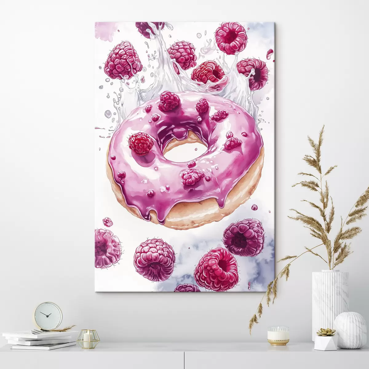 Schilderij Donat met frambozen met roze glazuur, heerlijk toetje, aquarelstijl Art. s42789